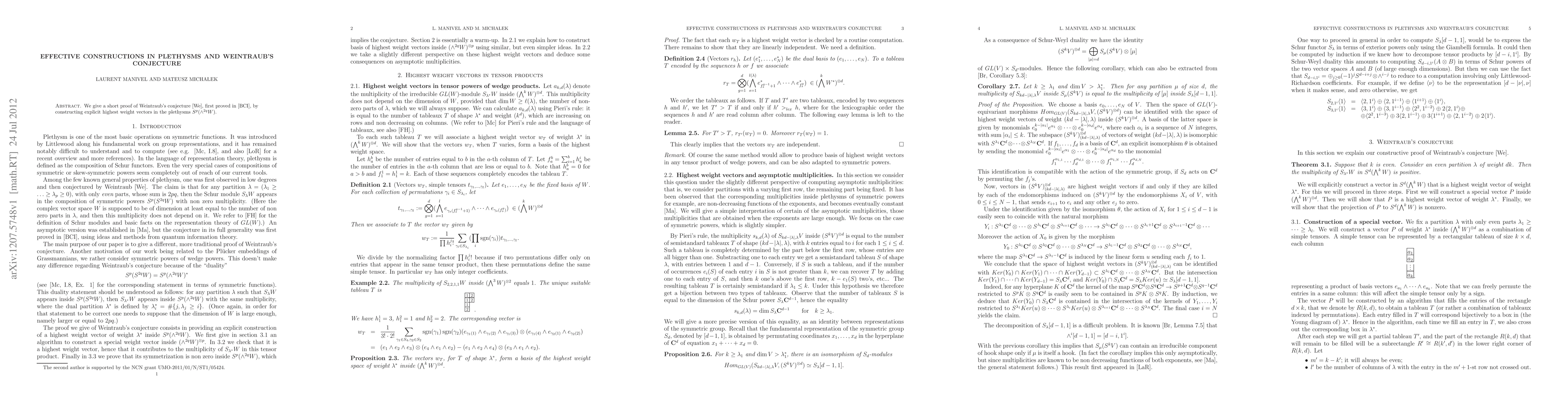 Summary: This paper provides a concise proof of Weintraub's conjecture by explicitly constructing highest weight vectors in the symmetric power of an even exterior power, thereby advancing understanding in plethysms.