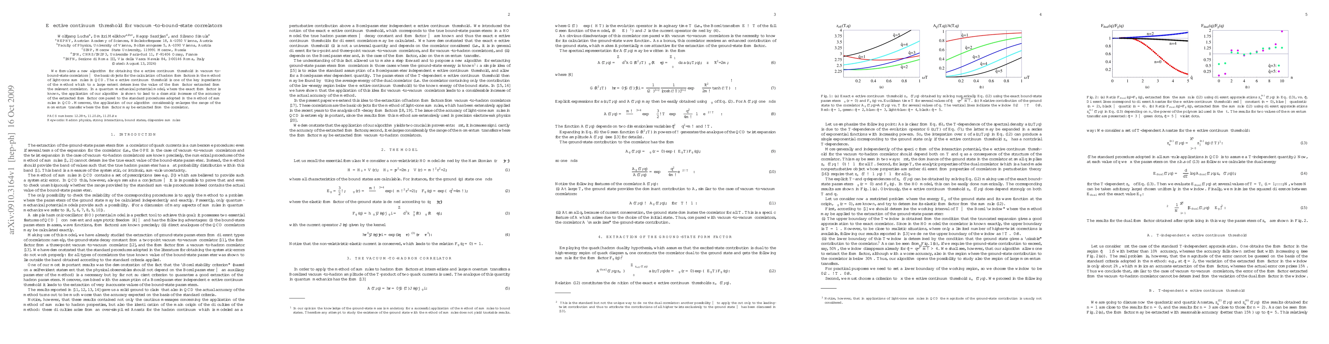 This paper introduces a novel algorithm for determining the effective continuum threshold in vacuum-to-bound-state correlators, crucial for calculating hadron form factors using light-cone sum rules in QCD. The new method significantly improves the accuracy and broadens the range of momentum transfer for extracting form factors compared to traditional approaches.