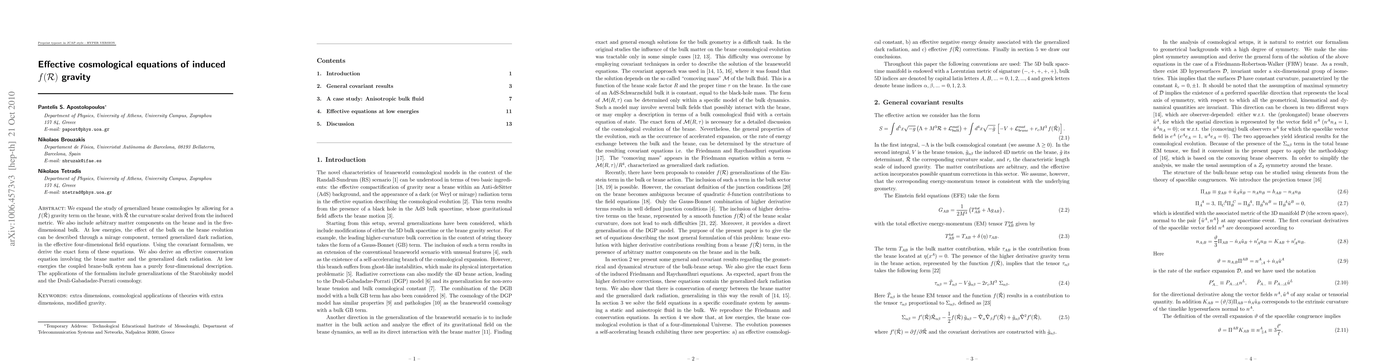 This paper explores generalized brane cosmologies with $f(\tilde{\cal R})$ gravity, deriving effective four-dimensional cosmological equations that include generalized dark radiation and an effective conservation equation. Applications extend to models like Starobinsky and Dvali-Gabadadze-Porrati cosmology.