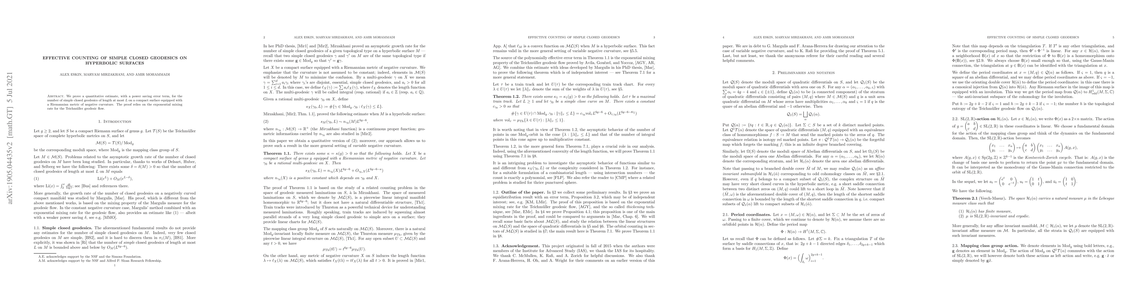 We prove a quantitative estimate, with a power saving error term, for the number of simple closed geodesics of length at most $L$ on a compact surface equipped with a Riemannian metric of negative curvature. The proof relies on the exponential mixing rate for the Teichm\"{u}ller geodesic flow.