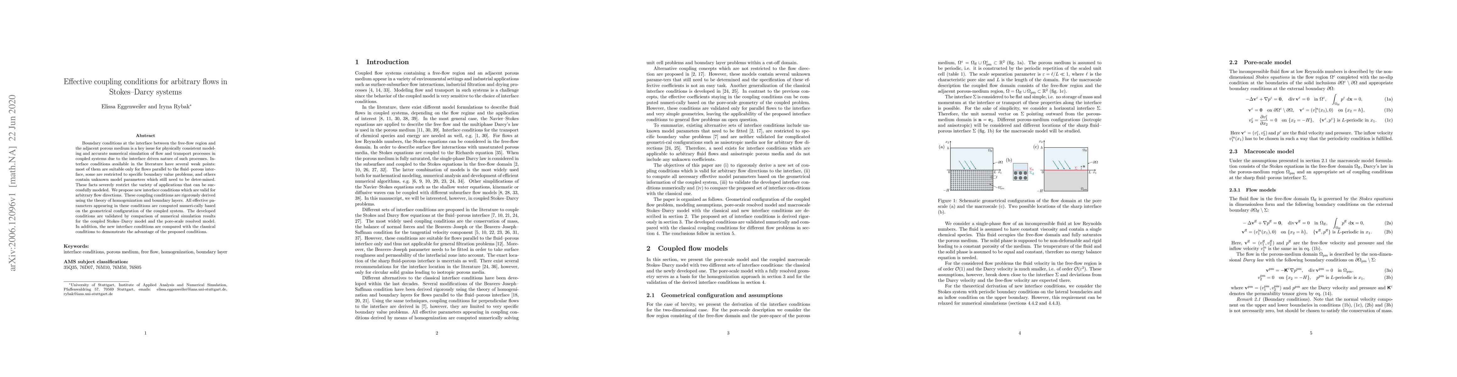 Boundary conditions at the interface between the free-flow region and the adjacent porous medium is a key issue for physically consistent modeling and accurate numerical simulation of flow and transport processes in coupled systems due to the interface driven nature of such processes. Interface conditions available in the literature have several weak points: most of them are suitable only for flows parallel to the fluid-porous interface, some are restricted to specific boundary value problems, and others contain unknown model parameters which still need to be determined. These facts severely restrict the variety of applications that can be successfully modeled. We propose new interface conditions which are valid for arbitrary flow directions. These coupling conditions are rigorously derived using the theory of homogenization and boundary layers. All effective parameters appearing in these conditions are computed numerically based on the geometrical configuration of the coupled system. The developed conditions are validated by comparison of numerical simulation results for the coupled Stokes-Darcy model and the pore-scale resolved model. In addition, the new interface conditions are compared with the classical conditions to demonstrate the advantage of the proposed conditions.