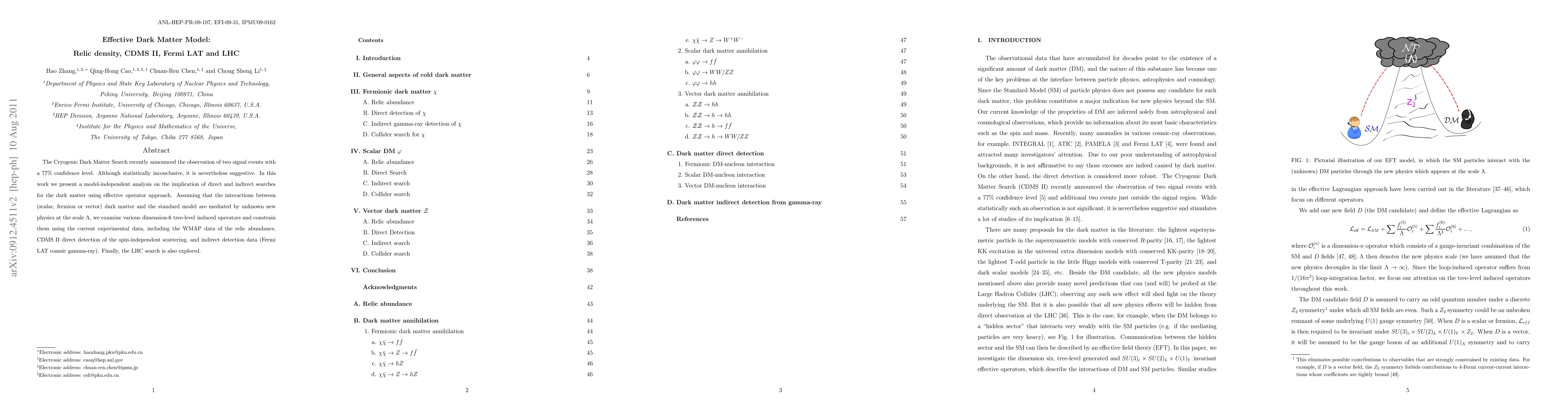 This paper investigates the implications of a potential dark matter signal observed by the Cryogenic Dark Matter Search, analyzing model-independent constraints from various experimental data including relic density, CDMS II direct detection, Fermi LAT cosmic gamma-ray, and LHC reach. The study focuses on the interaction between dark matter and the Standard Model via unknown new physics at a scale $\Lambda$.