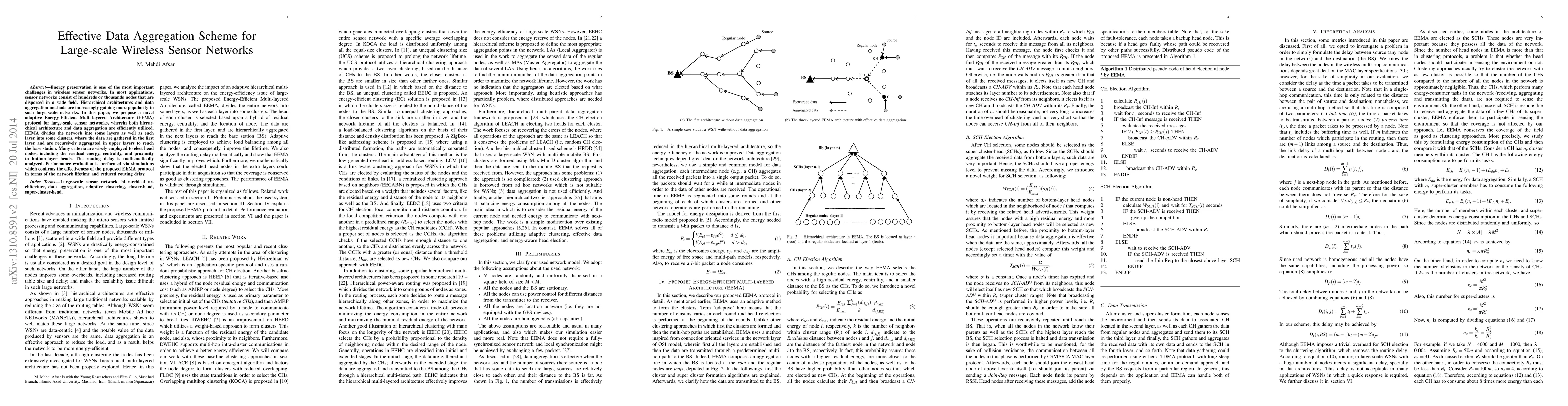 This paper proposes an adaptive Energy-Efficient Multi-layered Architecture (EEMA) protocol for large-scale wireless sensor networks, utilizing hierarchical architecture and data aggregation to enhance energy preservation and reduce routing delay. Simulation results show that EEMA effectively extends network lifetime and minimizes delay.