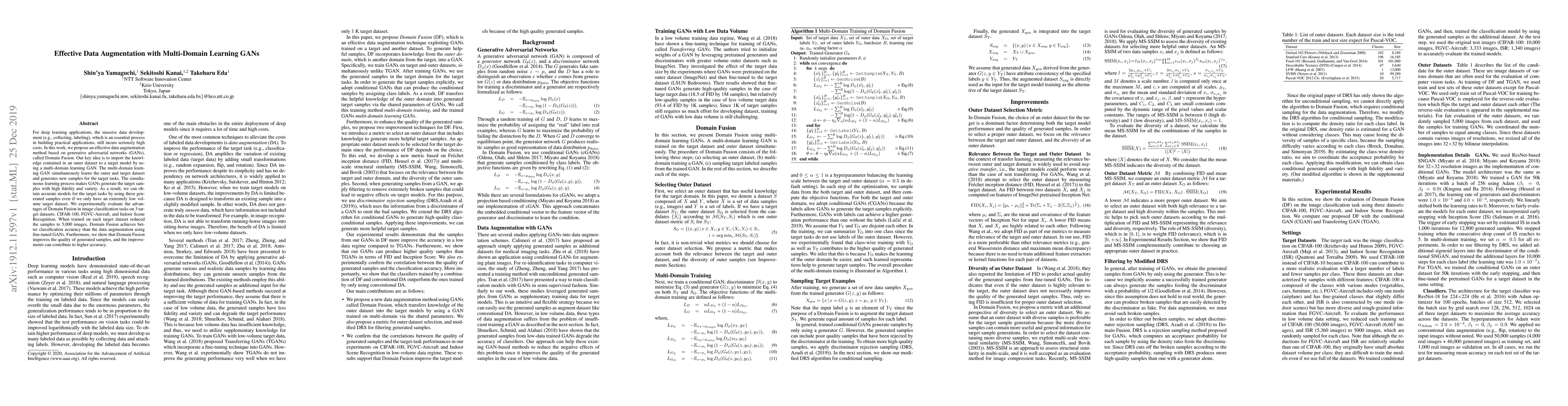 This paper proposes Domain Fusion, a data augmentation method using multi-domain learning GANs to enhance deep learning models, especially when target datasets are small. Experiments show that Domain Fusion outperforms fine-tuned GANs in image classification tasks on CIFAR-100, FGVC-Aircraft, and Indoor Scene Recognition, achieving higher accuracy and better sample quality.