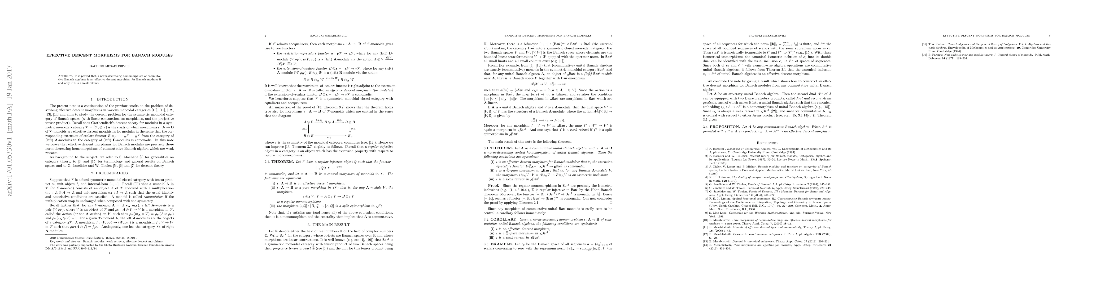 It is proved that a norm-decreasing homomorphism of commutative Banach algebras is an effective descent morphism for Banach modules if and only if it is a weak retract.