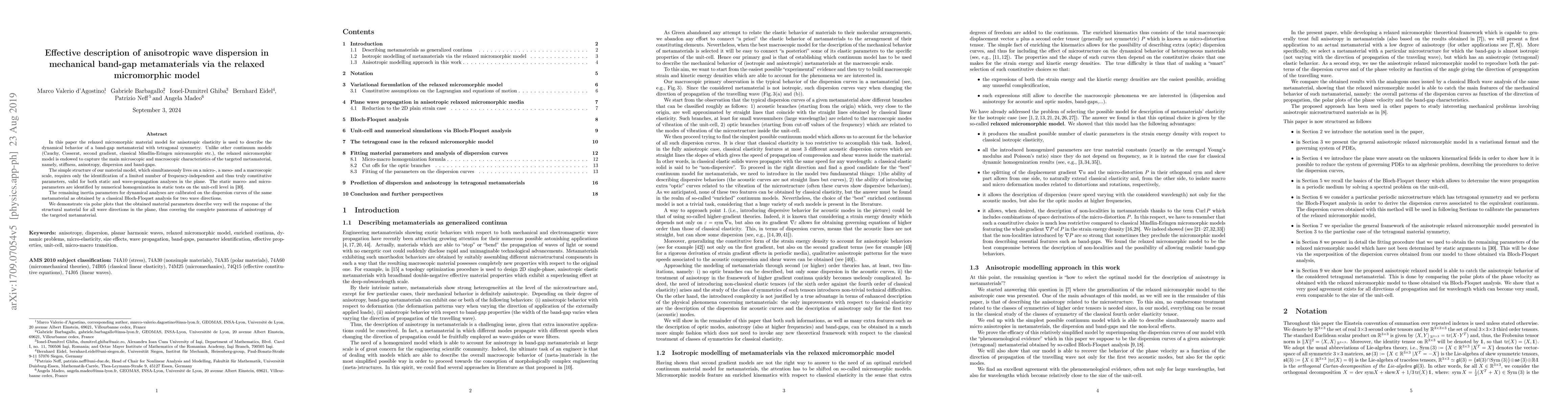 This paper employs the relaxed micromorphic model to analyze the anisotropic wave dispersion in tetragonally symmetric band-gap metamaterials, providing a comprehensive description of their stiffness, anisotropy, and dispersion. The model's simplicity and limited parameter requirement enable accurate representation of the metamaterial's dynamic behavior across all wave directions.