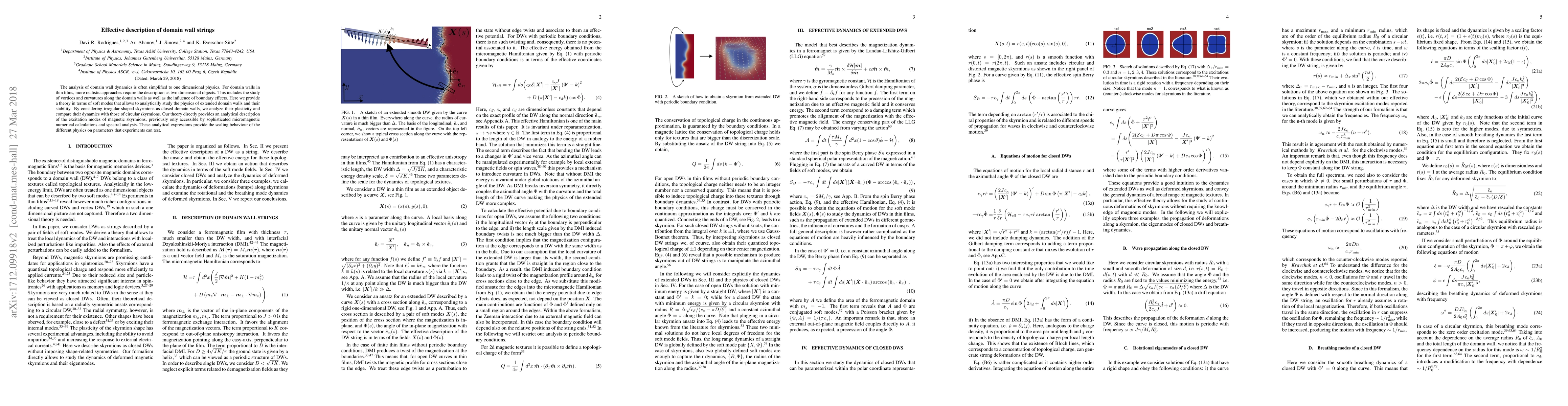 The analysis of domain wall dynamics is often simplified to one dimensional physics. For domain walls in thin films, more realistic approaches require the description as two dimensional objects. This includes the study of vortices and curvatures along the domain walls as well as the influence of boundary effects. Here we provide a theory in terms of soft modes that allows to analytically study the physics of extended domain walls and their stability. By considering irregular shaped skyrmions as closed domain walls, we analyze their plasticity and compare their dynamics with those of circular skyrmions. Our theory directly provides an analytical description of the the excitation modes of magnetic skyrmions, previously only accessible by sophisticated micromagnetic numerical calculations and spectral analysis. These analytical expressions provide the scaling behaviour of the different physics on parameters that experiments can test.