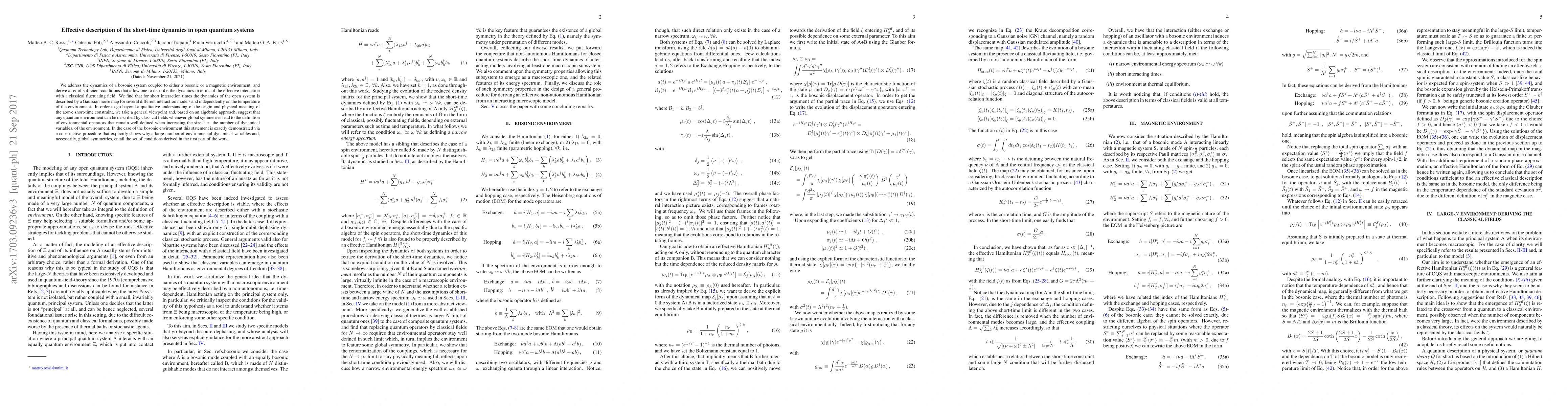We address the dynamics of a bosonic system coupled to either a bosonic or a magnetic environment, and derive a set of sufficient conditions that allow one to describe the dynamics in terms of the effective interaction with a classical fluctuating field. We find that for short interaction times the dynamics of the open system is described by a Gaussian noise map for several different interaction models and independently on the temperature of the environment. In order to go beyond a qualitative understanding of the origin and physical meaning of the above short-time constraint, we take a general viewpoint and, based on an algebraic approach, suggest that any quantum environment can be described by classical fields whenever global symmetries lead to the definition of environmental operators that remain well defined when increasing the size, i.e. the number of dynamical variables, of the environment. In the case of the bosonic environment this statement is exactly demonstrated via a constructive procedure that explicitly shows why a large number of environmental dynamical variables and, necessarily, global symmetries, entail the set of conditions derived in the first part of the work.