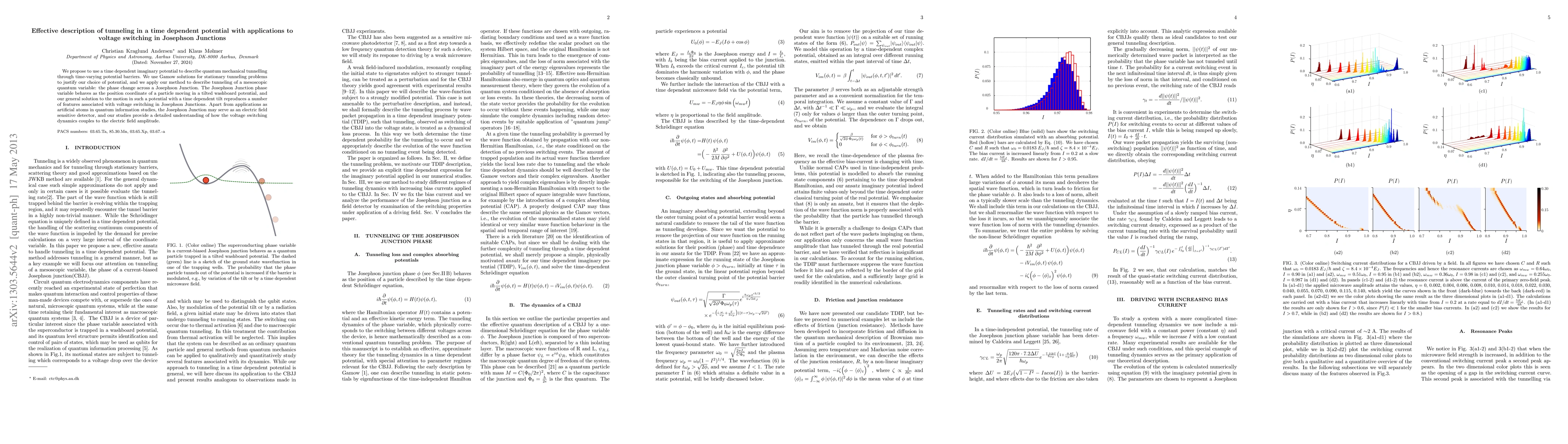 This paper proposes a time-dependent imaginary potential to describe quantum tunneling through varying potential barriers, using Gamow solutions to justify the method. The approach is applied to Josephson junctions, providing insights into voltage switching dynamics and its coupling to electric field amplitude.