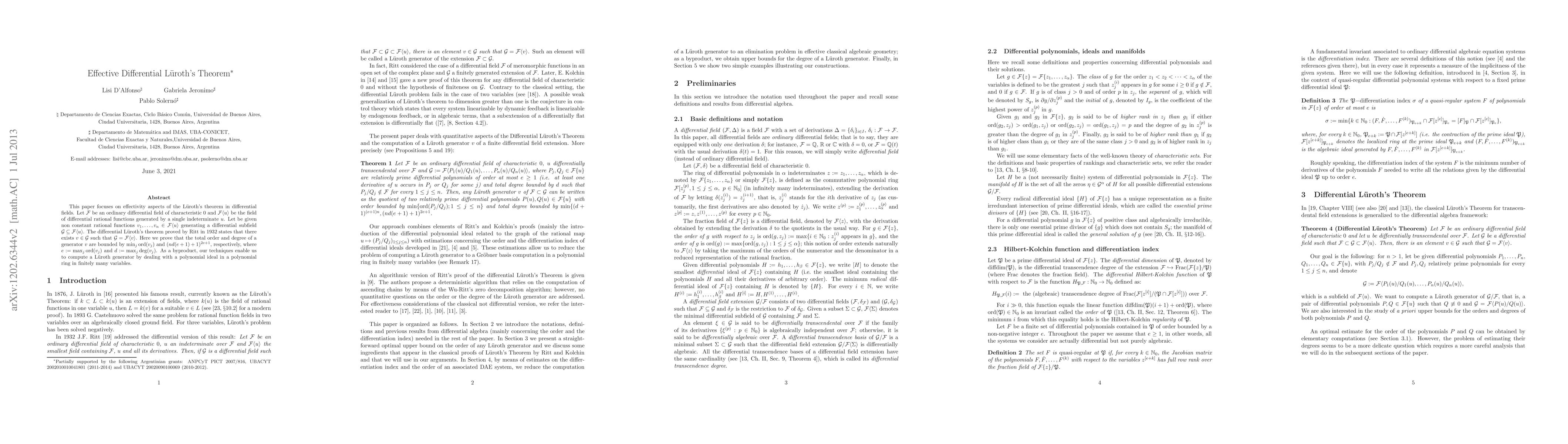 This paper proves effective bounds for the total order and degree of a generator in the differential L\"uroth's theorem, showing that they are bounded by specific functions of the orders and degrees of given generating functions. The techniques also enable the computation of a L\"uroth generator through polynomial ideal manipulation.