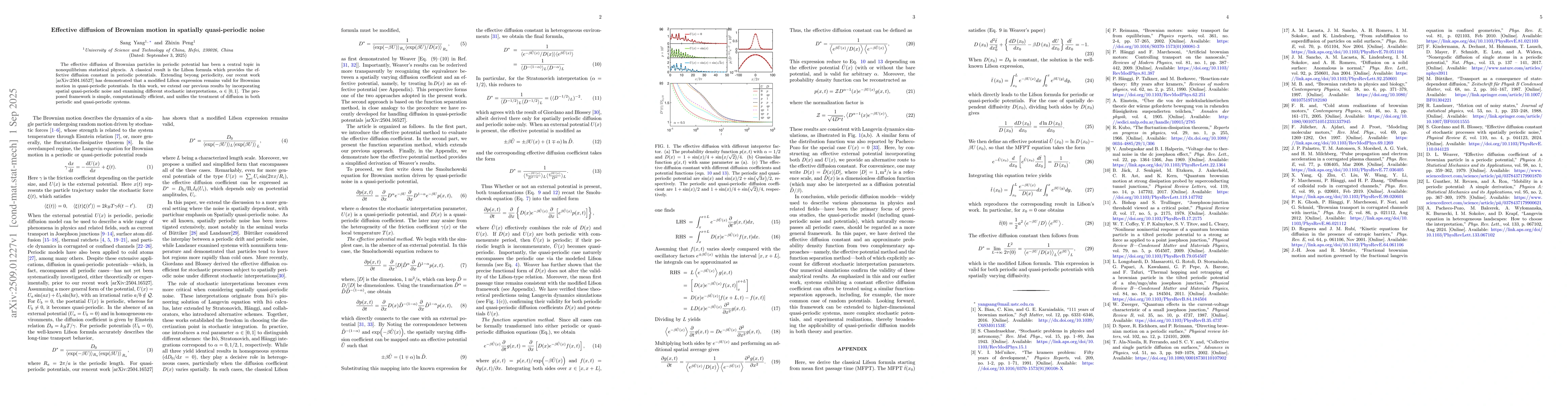The effective diffusion of Brownian particles in periodic potential has been a central topic in nonequilibrium statistical physcis. A classical result is the Lifson formula which provides the effective diffusion constant in periodic potentials. Extending beyong periodicity, our recent work [arXiv:2504.16527] has demonstrated that a modified Lifson expression remains valid for Brownian motion in quasi-periodic potentials. In this work, we extend our previous results by incorporating spatial quasi-periodic noise and examining different stochastic interpretations, $\alpha\in[0,1]$. The proposed framework is simple, computationally efficient, and unifies the treatment of diffusion in both periodic and quasi-periodic systems.