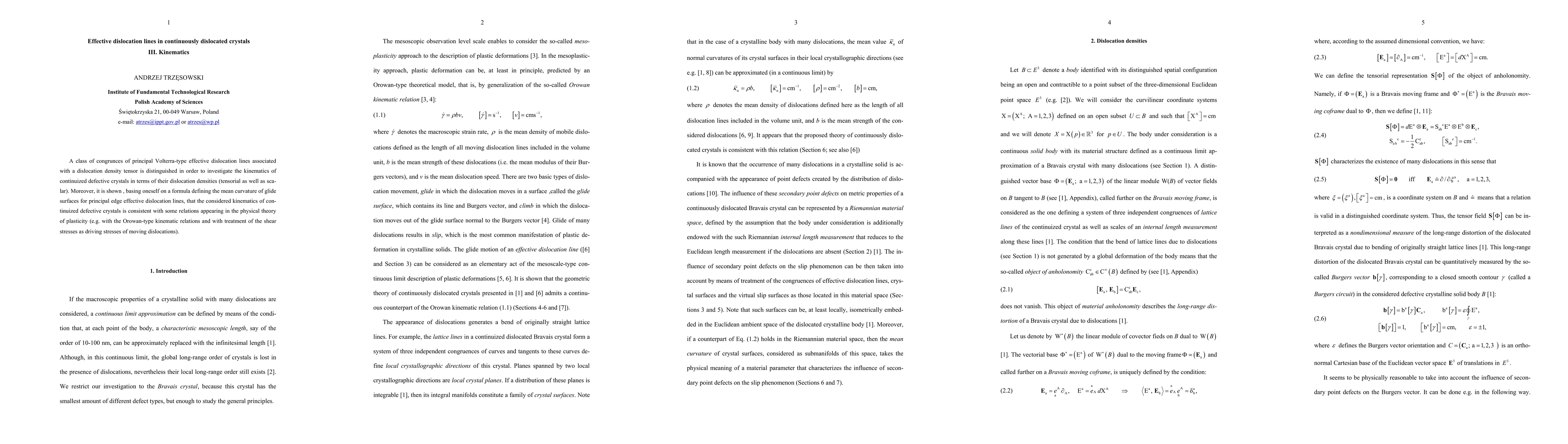 A class of congruences of principal Volterra-type effective dislocation lines associated with a dislocation density tensor is distinguished in order to investigate the kinematics of continuized defective crystals in terms of their dislocation densities (tensorial as well as scalar). Moreover, it shown, basing oneself on a formula defining the mean curvature of glide surfaces for principal edge effective dislocation lines, that the considered kinematics of continuized defective crystals is consistent with some relations appearing in the physical theory of plasticity (e.g. with the Orowan-type kinematic relations and with the treatment of shear stresses as driving stresses of moving dislocations).