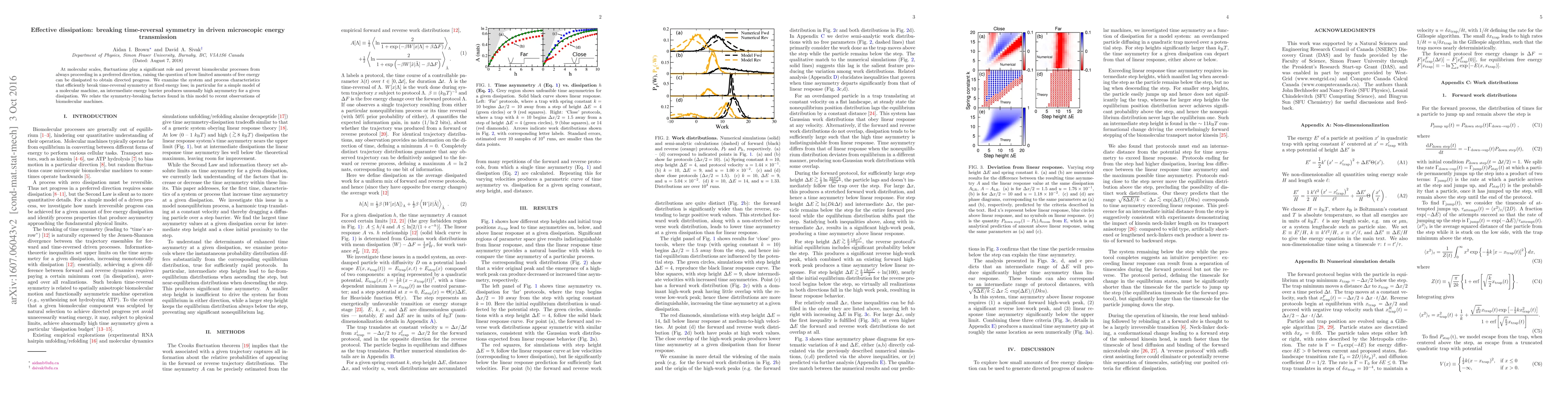 Researchers study how molecular machines can break time-reversal symmetry to obtain directed progress despite limited energy dissipation. They find that an intermediate energy barrier produces unusually high asymmetry for a given dissipation.