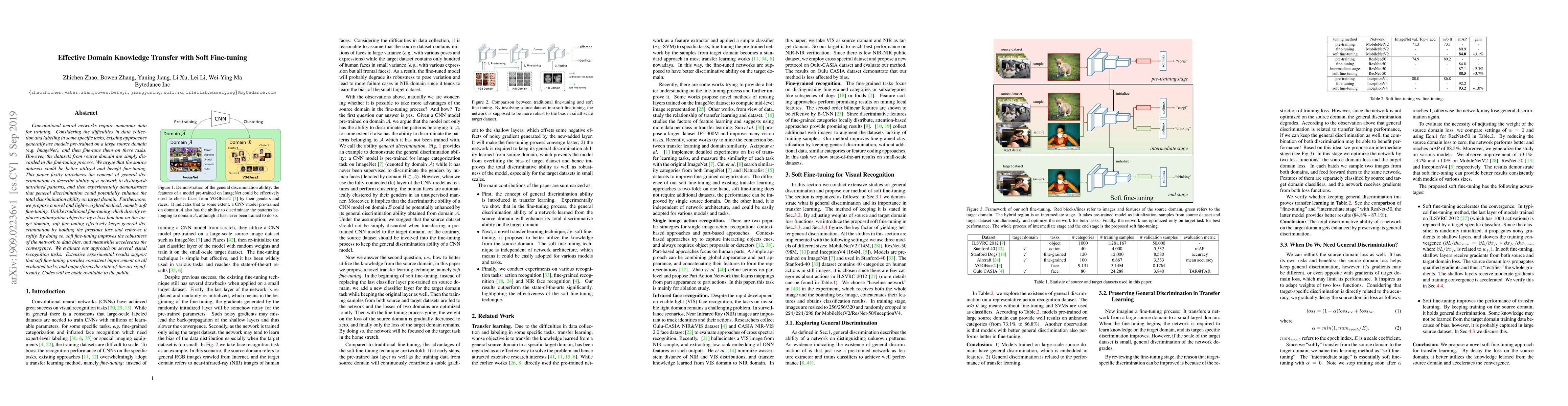 This paper proposes soft fine-tuning to enhance domain knowledge transfer in convolutional neural networks by retaining source domain data utility and improving network robustness. Experimental results show consistent improvements over state-of-the-art methods across various visual recognition tasks.