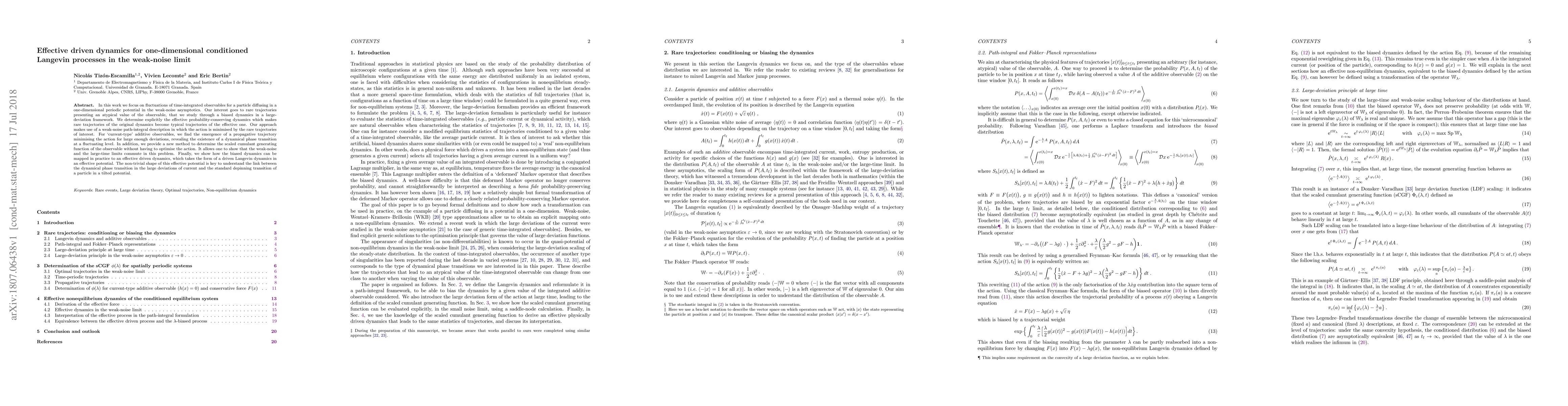 In this work we focus on fluctuations of time-integrated observables for a particle diffusing in a one-dimensional periodic potential in the weak-noise asymptotics. Our interest goes to rare trajectories presenting an atypical value of the observable, that we study through a biased dynamics in a large-deviation framework. We determine explicitly the effective probability-conserving dynamics which makes rare trajectories of the original dynamics become typical trajectories of the effective one. Our approach makes use of a weak-noise path-integral description in which the action is minimised by the rare trajectories of interest. For `current-type' additive observables, we find the emergence of a propagative trajectory minimising the action for large enough deviations, revealing the existence of a dynamical phase transition at a fluctuating level. In addition, we provide a new method to determine the scaled cumulant generating function of the observable without having to optimise the action. It allows one to show that the weak-noise and the large-time limits commute in this problem. Finally, we show how the biased dynamics can be mapped in practice to an effective driven dynamics, which takes the form of a driven Langevin dynamics in an effective potential. The non-trivial shape of this effective potential is key to understand the link between the dynamical phase transition in the large deviations of current and the standard depinning transition of a particle in a tilted potential.