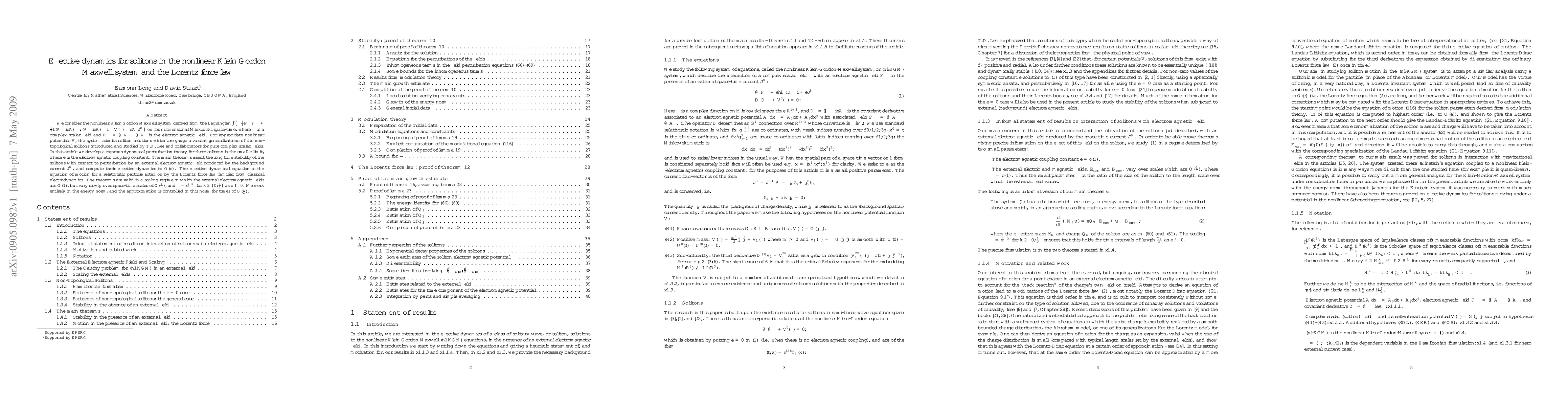 We consider the nonlinear Klein Gordon Maxwell system on four dimensional Minkowski space-time. For appropriate nonlinearities the system admits soliton solutions which are gauge invariant generalizations of the non-topological solitons introduced and studied by T.D. Lee and collaborators for pure complex scalar fields. We develop a rigorous dynamical perturbation theory for these solitons in the small e limit, where e is the electromagnetic coupling constant. The main theorems assert the long time stability of the solitons with respect to perturbation by an external electromagnetic field produced by the background current, and compute their effective dynamics to O(e). The effective dynamical equation is the equation of motion for a relativistic particle acted on by the Lorentz force law familiar from classical electrodynamics.