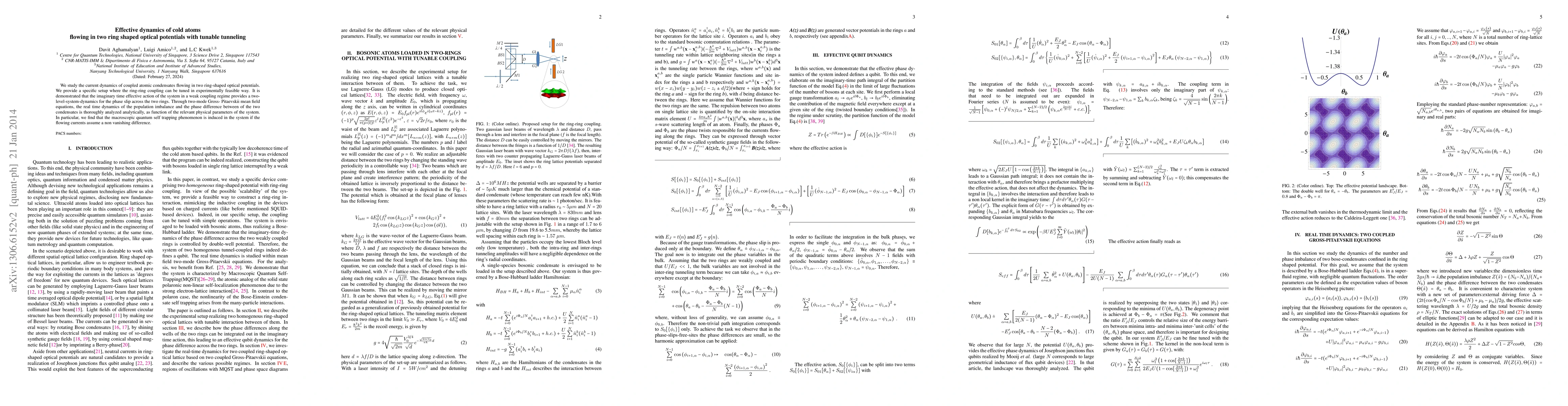 This paper investigates the dynamics of cold atomic condensates in two tunable ring-shaped optical potentials, demonstrating that weak coupling leads to two-level-system dynamics for phase slip. The study analytically analyzes the real-time population imbalance and phase difference using the Gross-Pitaevskii equations, revealing macroscopic quantum self-trapping when currents differ.