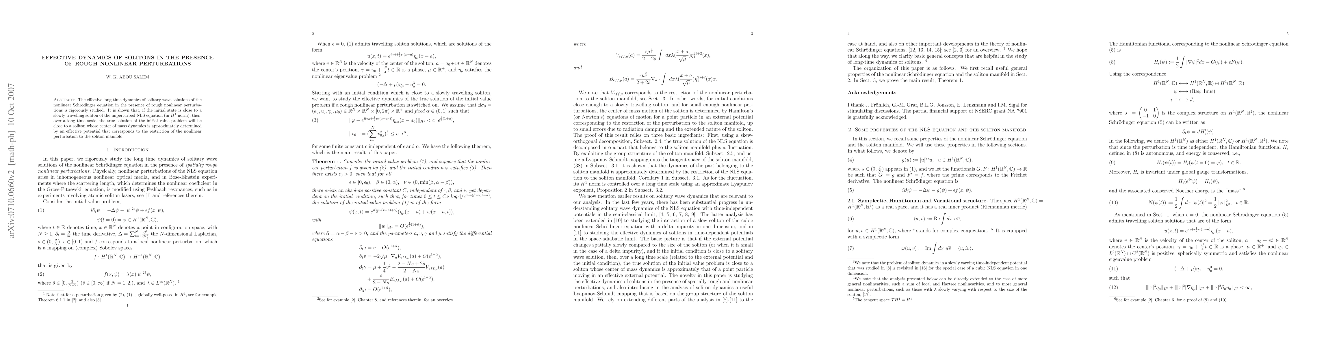 The effective long-time dynamics of solitary wave solutions of the nonlinear Schr\"odinger equation in the presence of rough nonlinear perturbations is rigorously studied. It is shown that, if the initial state is close to a slowly travelling soliton of the unperturbed NLS equation (in $H^1$ norm), then, over a long time scale, the true solution of the initial value problem will be close to a soliton whose center of mass dynamics is approximately determined by an effective potential that corresponds to the restriction of the nonlinear perturbation to the soliton manifold.