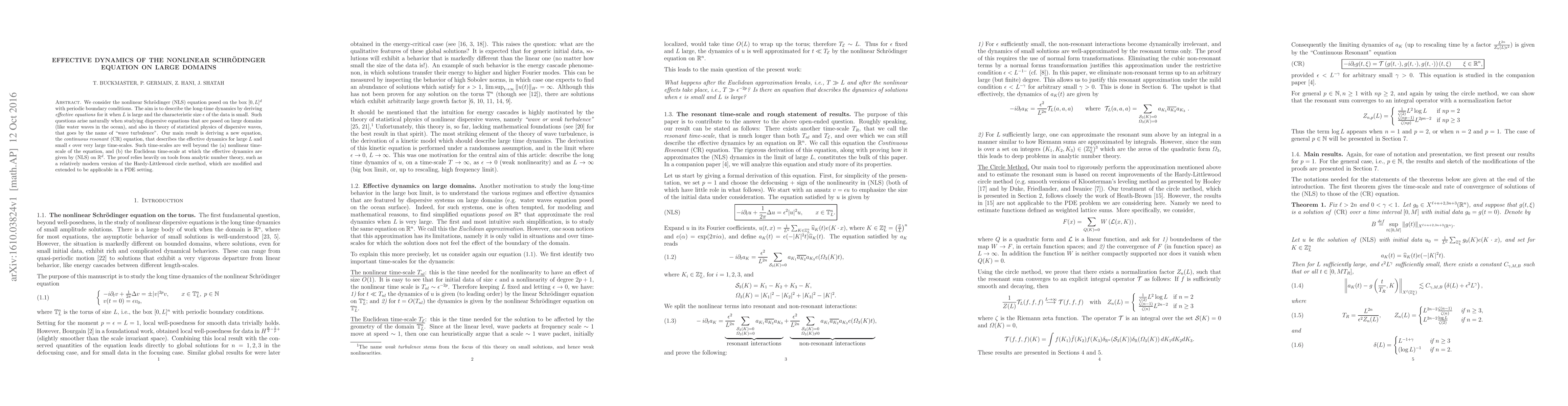 We consider the nonlinear Schr\"odinger (NLS) equation posed on the box $[0,L]^d$ with periodic boundary conditions. The aim is to describe the long-time dynamics by deriving effective equations for it when $L$ is large and the characteristic size $\epsilon$ of the data is small. Such questions arise naturally when studying dispersive equations that are posed on large domains (like water waves in the ocean), and also in theory of statistical physics of dispersive waves, that goes by the name of "wave turbulence". Our main result is deriving a new equation, the continuous resonant (CR) equation, that describes the effective dynamics for large $L$ and small $\epsilon$ over very large time-scales. Such time-scales are well beyond the (a) nonlinear time-scale of the equation, and (b) the Euclidean time-scale at which the effective dynamics are given by (NLS) on $\mathbb R^d$. The proof relies heavily on tools from analytic number theory, such as a relatively modern version of the Hardy-Littlewood circle method, which are modified and extended to be applicable in a PDE setting.