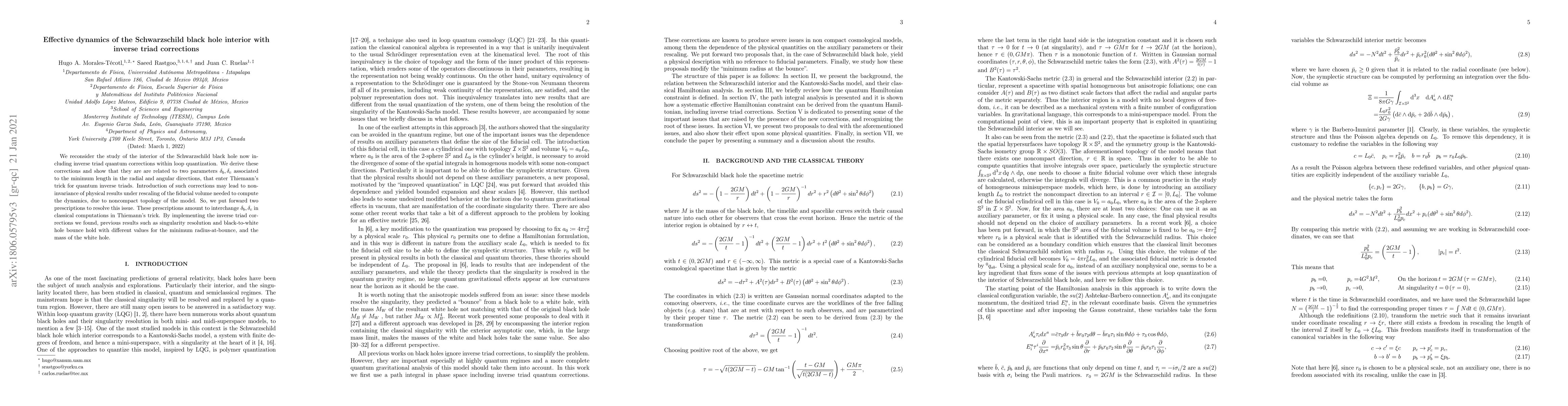This paper explores the Schwarzschild black hole's interior dynamics with inverse triad quantum corrections from loop quantization, introducing parameters $\delta_b$ and $\delta_c$ that affect the radial and angular minimum lengths. It proposes two prescriptions to address the non-invariance under rescaling due to the model's noncompact topology, maintaining singularity resolution and black-to-white hole bounce with altered parameters.