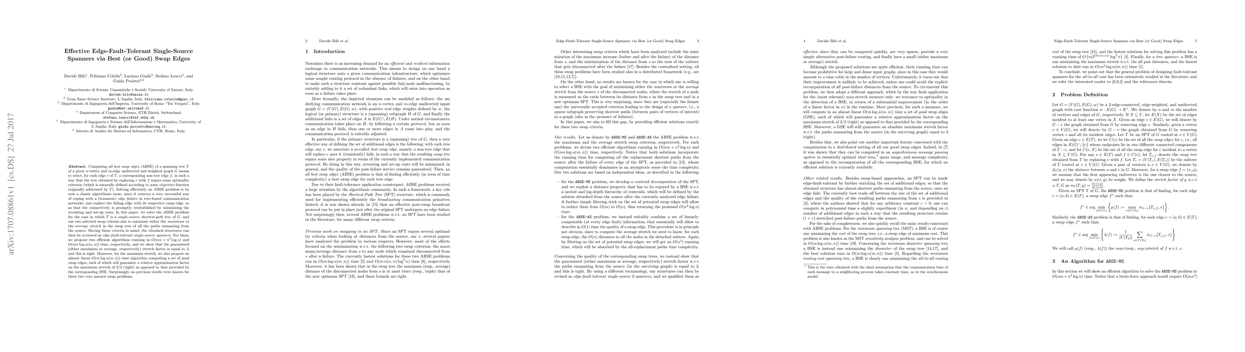This research presents efficient algorithms for computing 'best swap edges' in single-source shortest-path trees to ensure fault-tolerance in communication networks. The algorithms minimize either maximum or average stretch factors, both guaranteed to be 3, which is shown to be optimal. Additionally, an almost linear-time algorithm is proposed for 'good swap edges' providing a relative approximation factor of 3/2 for maximum stretch.
