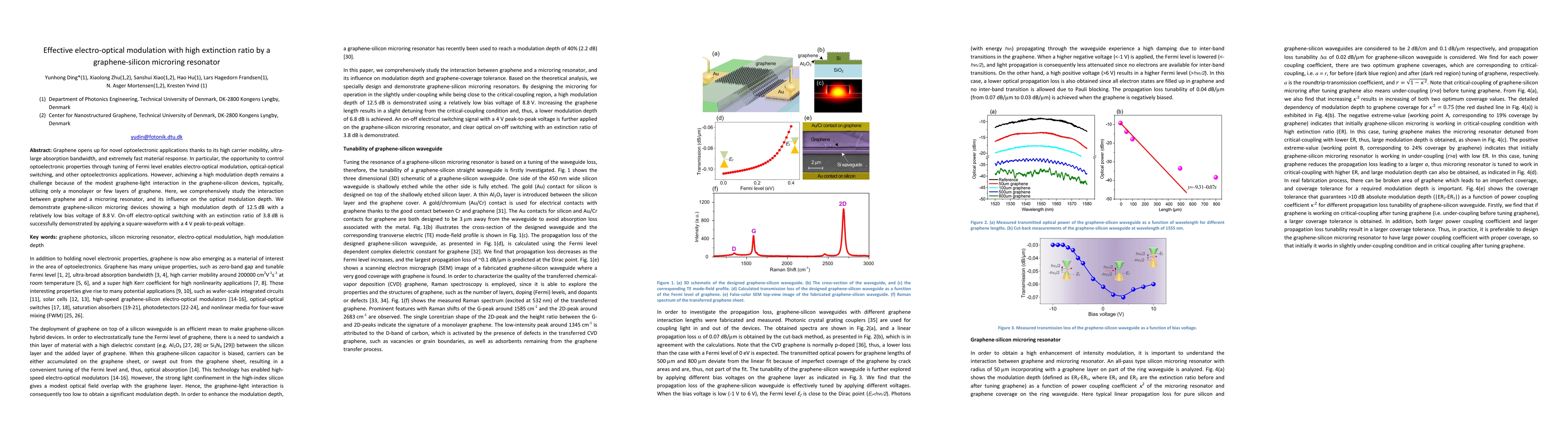 This paper investigates the use of graphene-silicon microring resonators for high-efficiency electro-optical modulation, achieving a modulation depth of 12.5 dB with a low bias voltage of 8.8 V. The study demonstrates on-off electro-optical switching with an impressive extinction ratio of 3.8 dB.