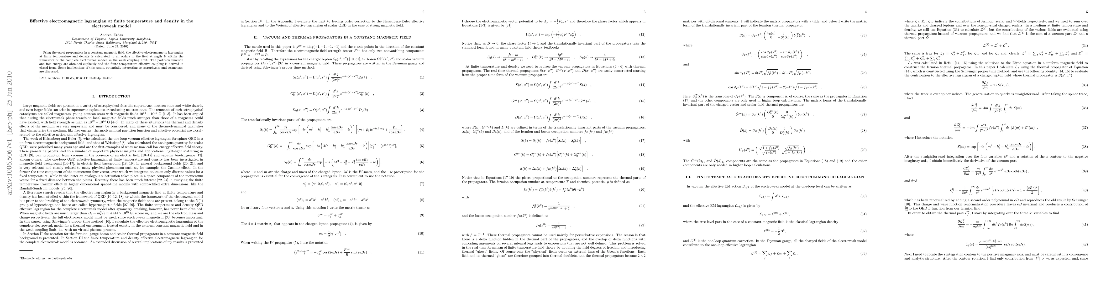 This paper calculates the effective electromagnetic Lagrangian at finite temperature and density in the electroweak model, providing a closed-form expression for the finite-temperature effective coupling.