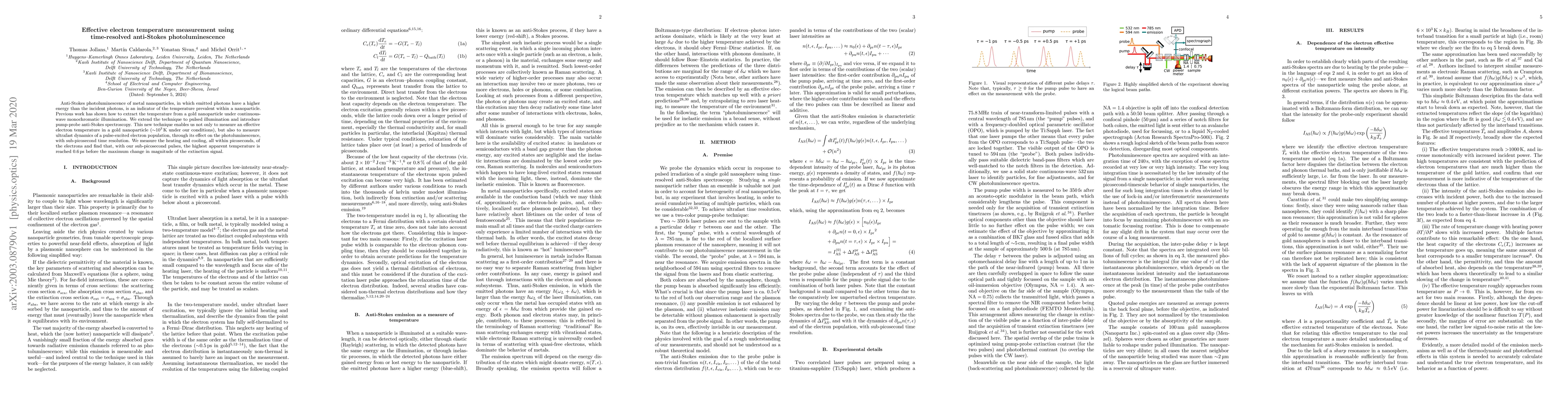 Researchers developed a technique to measure electron temperature in gold nanoparticles using anti-Stokes photoluminescence under pulsed illumination, achieving sub-picosecond time resolution and measuring ultrafast dynamics of electrons.