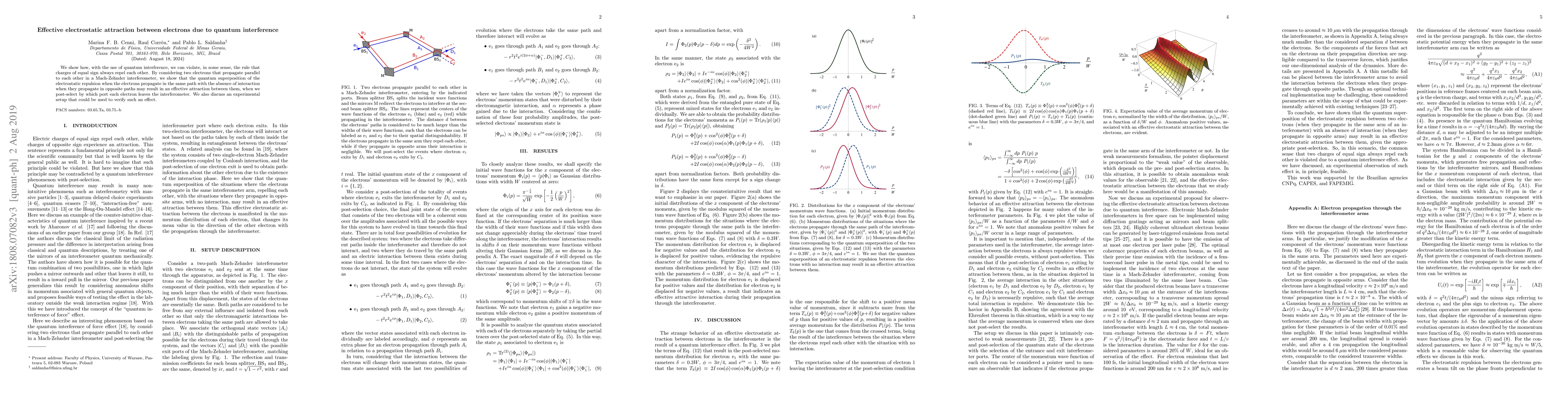 This paper demonstrates that quantum interference can lead to an effective electrostatic attraction between electrons, defying the usual repulsion of like charges. By using a Mach-Zehnder interferometer, the study shows how superposition of paths can result in attraction when electrons are post-selected based on their respective paths.