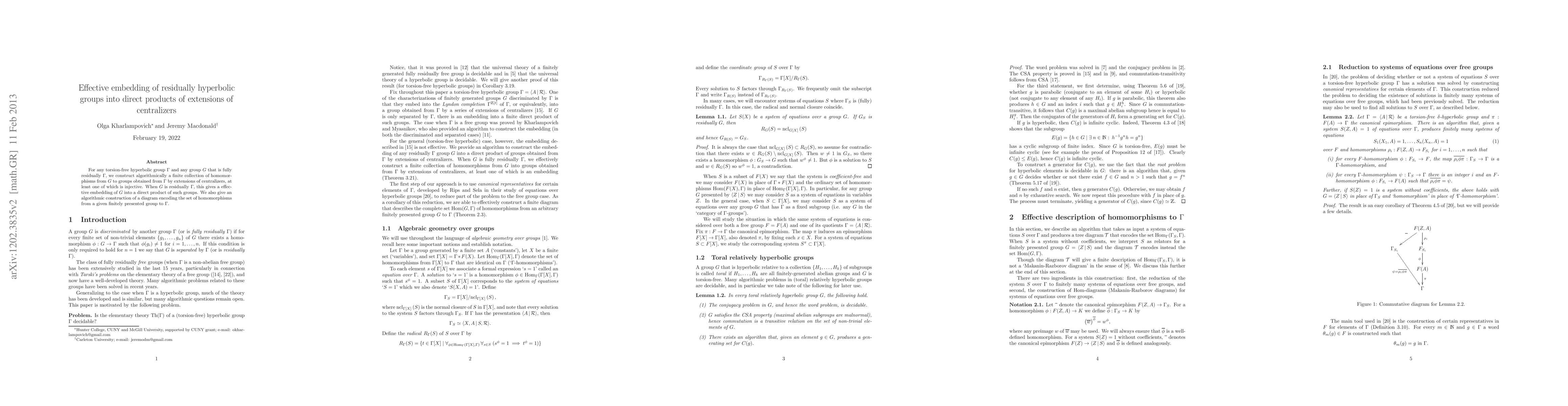 For any torsion-free hyperbolic group $\Gamma$ and any group $G$ that is fully residually $\Gamma$, we construct algorithmically a finite collection of homomorphisms from $G$ to groups obtained from $\Gamma$ by extensions of centralizers, at least one of which is injective. When $G$ is residually $\Gamma$, this gives a effective embedding of $G$ into a direct product of such groups. We also give an algorithmic construction of a diagram encoding the set of homomorphisms from a given finitely presented group to $\Gamma$.
