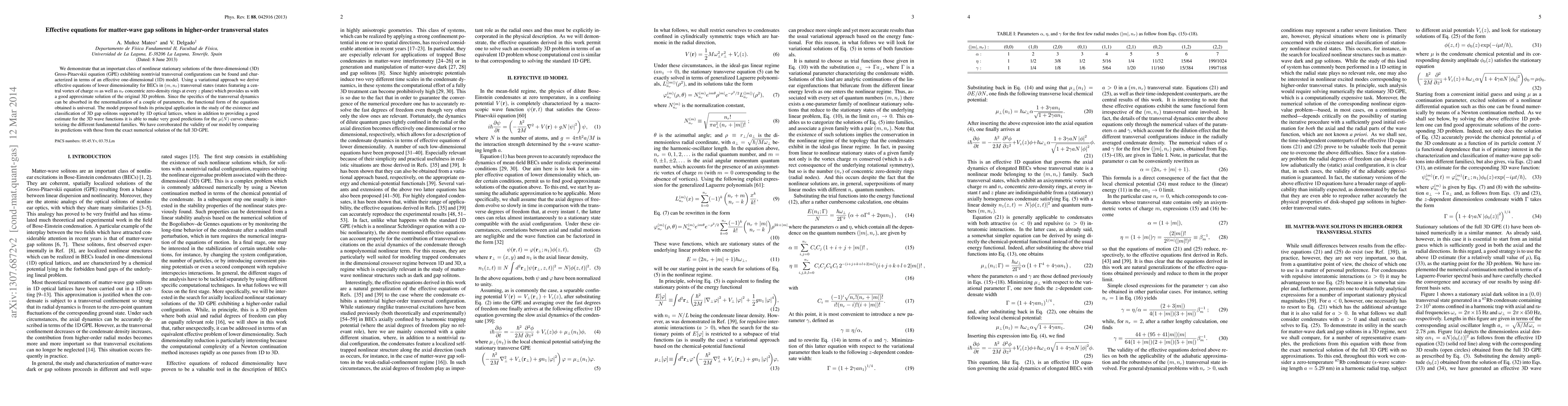We demonstrate that an important class of nonlinear stationary solutions of the three-dimensional (3D) Gross-Pitaevskii equation (GPE) exhibiting nontrivial transversal configurations can be found and characterized in terms of an effective one-dimensional (1D) model. Using a variational approach we derive effective equations of lower dimensionality for BECs in $(m,n_{r})$ transversal states (states featuring a central vortex of charge $m$ as well as $n_{r}$ concentric zero-density rings at every $z$ plane) which provides us with a good approximate solution of the original 3D problem. Since the specifics of the transversal dynamics can be absorbed in the renormalization of a couple of parameters, the functional form of the equations obtained is universal. The model proposed finds its principal application in the study of the existence and classification of 3D gap solitons supported by 1D optical lattices, where in addition to providing a good estimate for the 3D wave functions it is able to make very good predictions for the $\mu(N)$ curves characterizing the different fundamental families. We have corroborated the validity of our model by comparing its predictions with those from the exact numerical solution of the full 3D GPE.