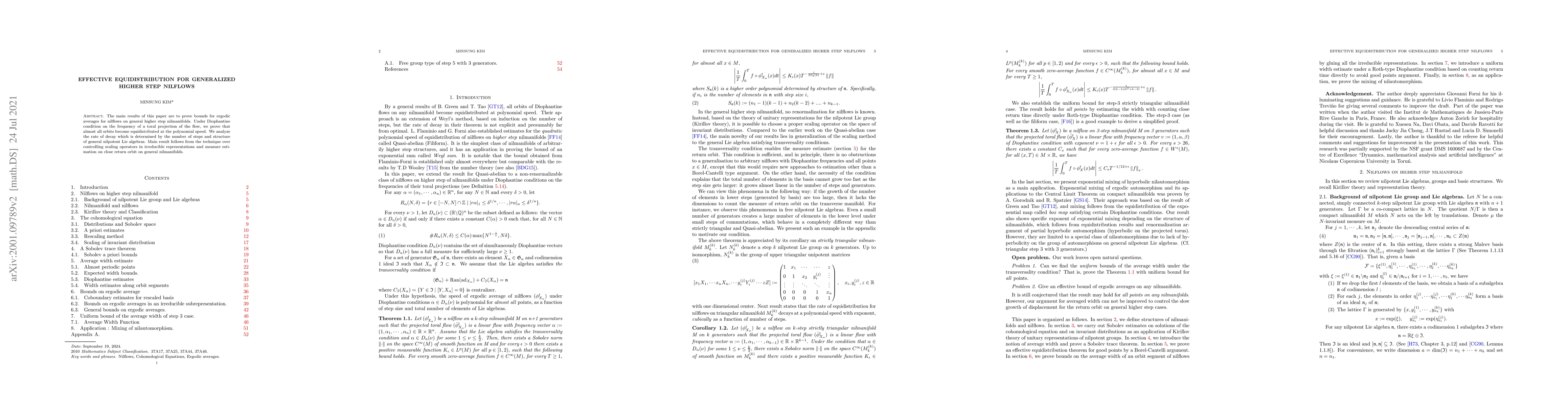 The main results of this paper are to prove bounds for ergodic averages for nilflows on general higher step nilmanifolds. Under Diophantine condition on the frequency of a toral projection of the flow, we prove that almost all orbits become equidistributed at the polynomial speed. We analyze the exponent with the speed of decay which is determined by the number of steps and structure of general nilpotent Lie algebras. The main result follows from the technique over controlling scaling operators in irreducible representations and measure estimation on close return orbit on general nilmanifolds.