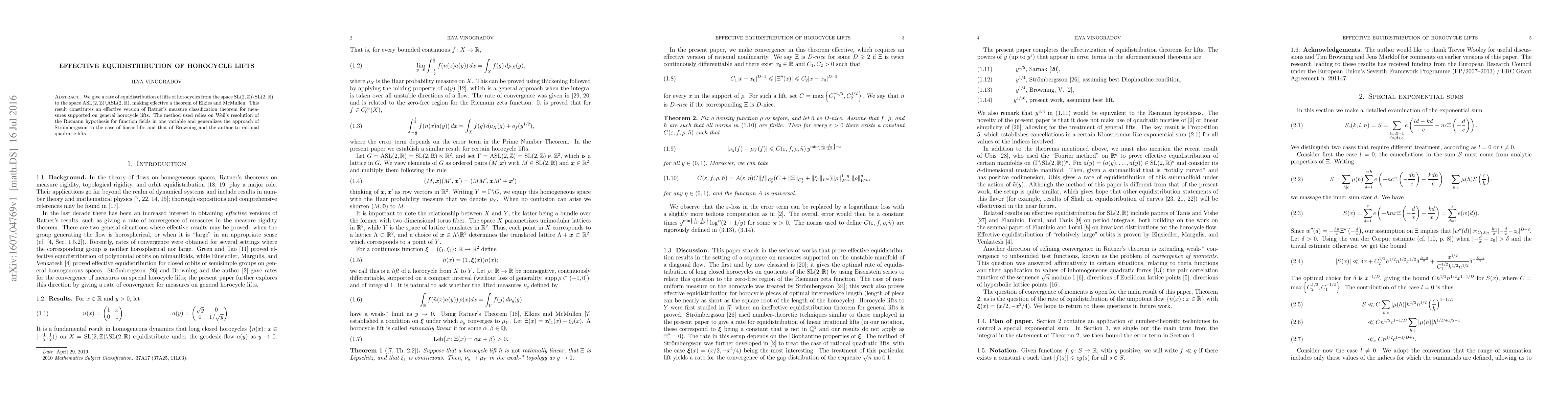 We give a rate of equidistribution of lifts of horocycles from the space $\mathrm{SL}(2,\mathbb Z)\backslash \mathrm{SL}(2, \mathbb R)$ to the space $\mathrm{ASL}(2,\mathbb Z)\backslash \mathrm{ASL}(2,\mathbb R)$, making effective a theorem of Elkies and McMullen. This result constitutes an effective version of Ratner's measure classification theorem for measures supported on general horocycle lifts. The method used relies on Weil's resolution of the Riemann hypothesis for function fields in one variable and generalizes the approach of Str\"ombergsson to the case of linear lifts and that of Browning and the author to rational quadratic lifts.