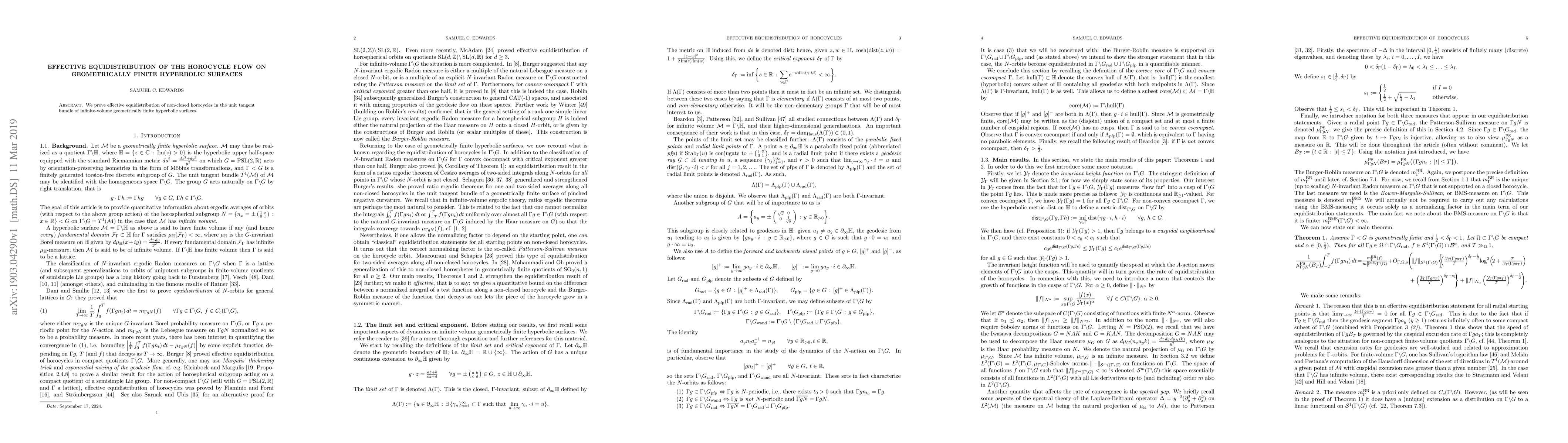 This paper establishes effective equidistribution for non-closed horocycles within the unit tangent bundle of infinite-volume, geometrically finite hyperbolic surfaces. The results provide explicit bounds on the distribution process.