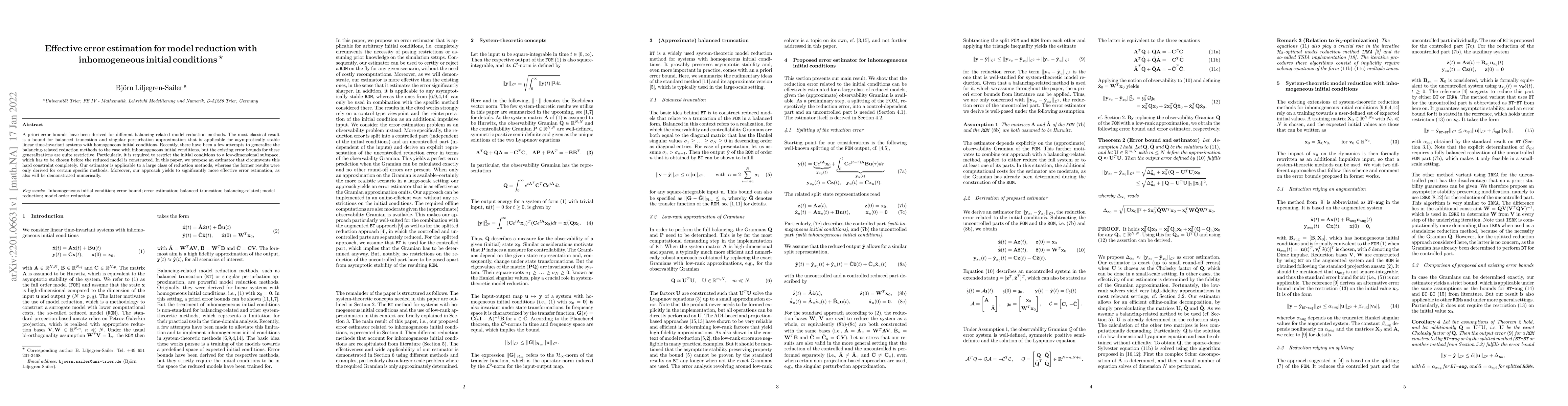 A priori error bounds have been derived for different balancing-related model reduction methods. The most classical result is a bound for balanced truncation and singular perturbation approximation that is applicable for asymptotically stable linear time-invariant systems with homogeneous initial conditions. Recently, there have been a few attempts to generalize the balancing-related reduction methods to the case with inhomogeneous initial conditions, but the existing error bounds for these generalizations are quite restrictive. Particularly, it is required to restrict the initial conditions to a low-dimensional subspace, which has to be chosen before the reduced model is constructed. In this paper, we propose an estimator that circumvents this hard constraint completely. Our estimator is applicable to a large class of reduction methods, whereas the former results were only derived for certain specific methods. Moreover, our approach yields to significantly more effective error estimation, as also will be demonstrated numerically.