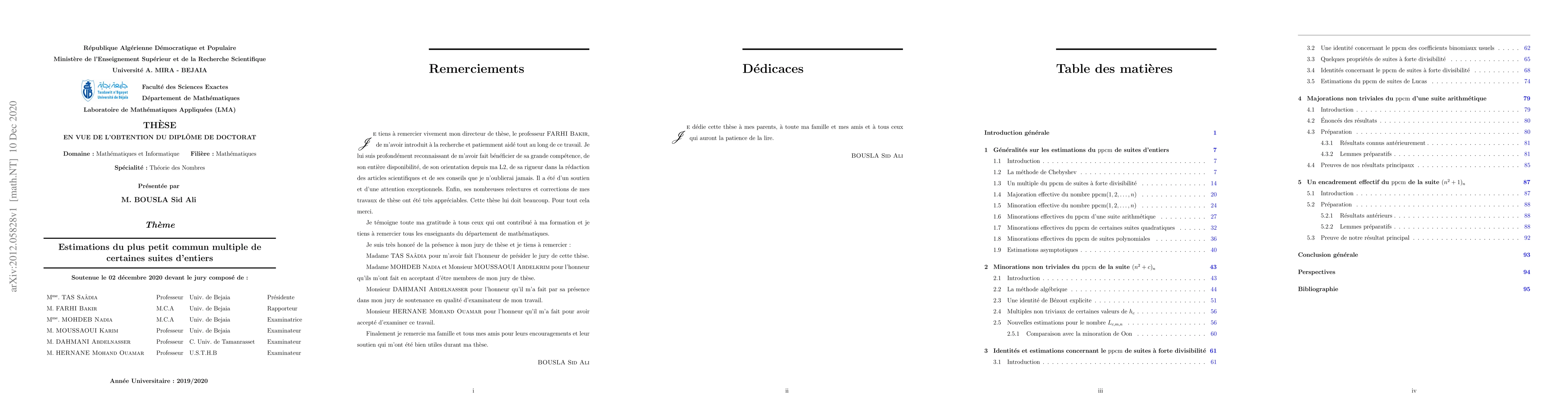 This thesis presents new estimates for the least common multiple of certain integer sequences, including quadratic sequences and arithmetic progressions, with implications for generalized Fibonacci sequences and improved lower bounds.