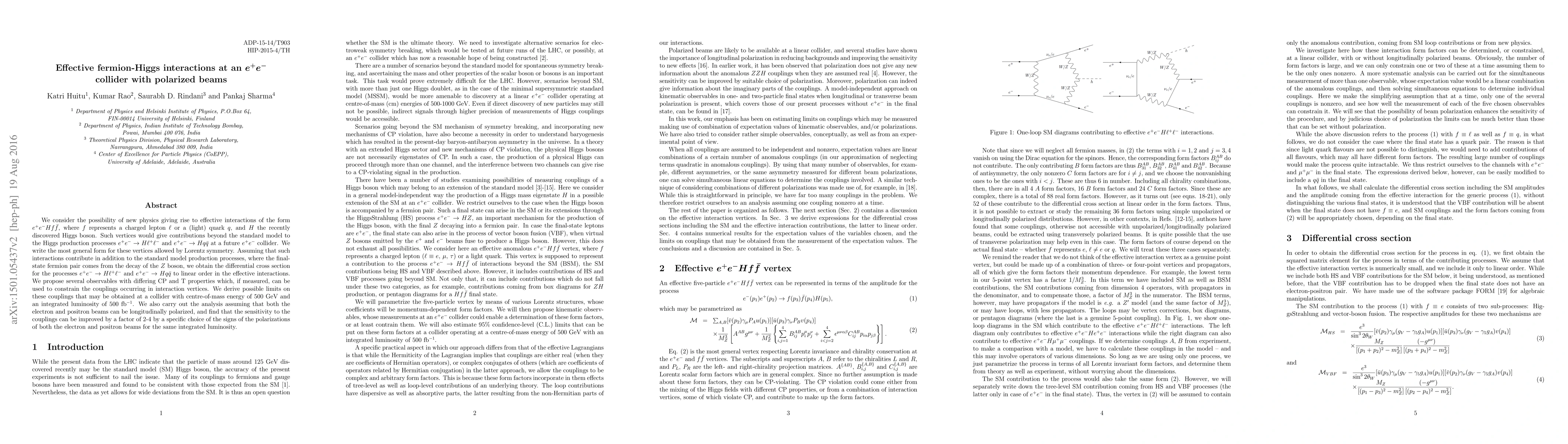 This paper explores effective fermion-Higgs interactions beyond the Standard Model at a future $e^+e^-$ collider, proposing new vertices contributing to Higgs production processes. It derives differential cross sections and suggests observables to constrain these interactions, finding that polarized beams can enhance sensitivity by a factor of 2-4.