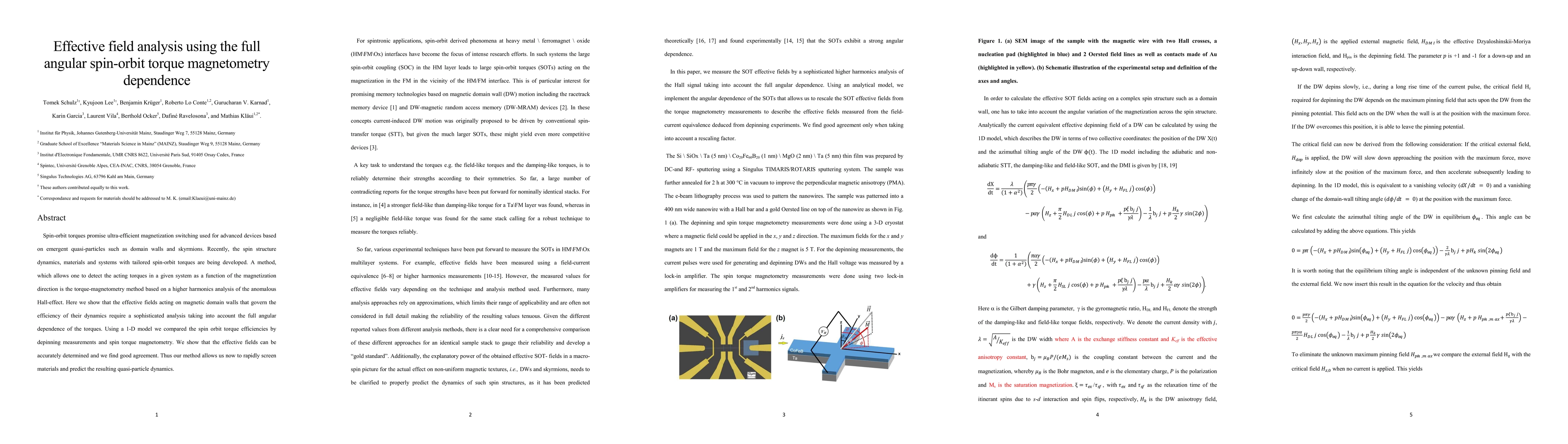 This paper presents a method for detecting spin-orbit torques in magnetic systems using torque-magnetometry and higher harmonics analysis of the anomalous Hall effect. The study reveals that effective fields influencing magnetic domain wall dynamics require full angular analysis of torques, leading to accurate determination and material screening for advanced device applications.