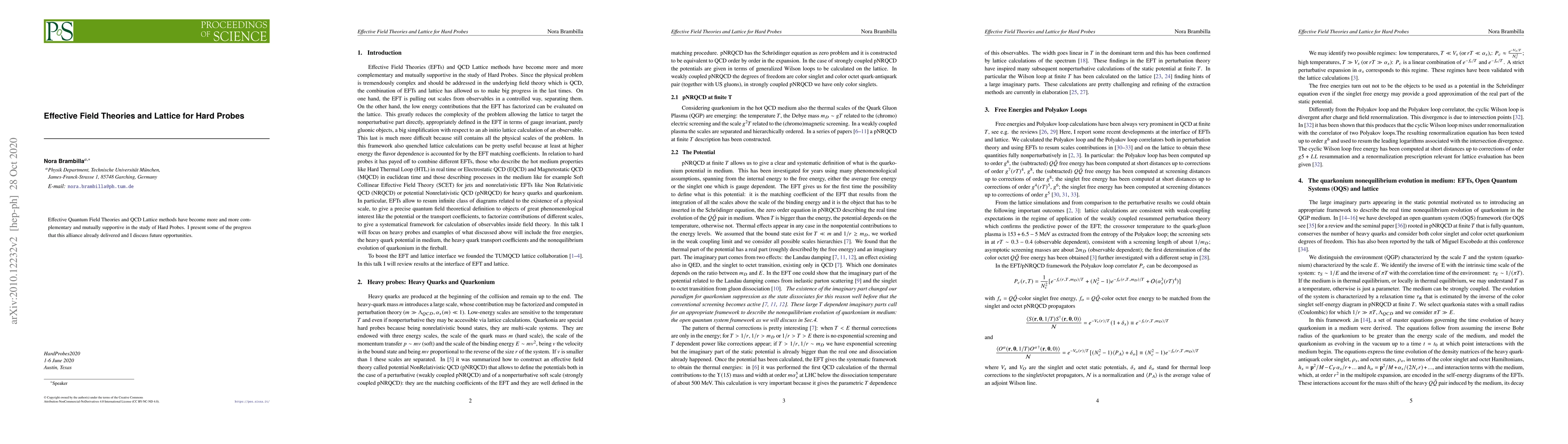 Effective Quantum Field Theories and QCD Lattice methods have become more and more complementary and mutually supportive in the study of Hard Probes. I present some of the progress that this alliance already delivered and I discuss future opportunities.