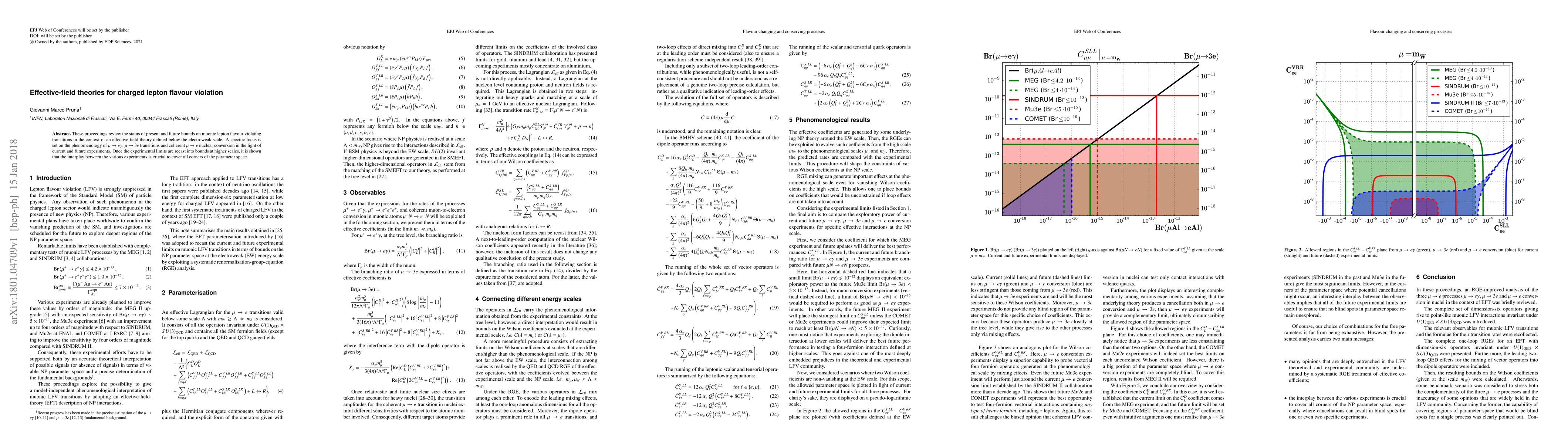 These proceedings review the status of present and future bounds on muonic lepton flavour violating transitions in the context of an effective-field theory defined below the electroweak scale. A specific focus is set on the phenomenology of $\mu\to e\gamma$, $\mu \to 3e$ transitions and coherent $\mu\to e$ nuclear conversion in the light of current and future experiments. Once the experimental limits are recast into bounds at higher scales, it is shown that the interplay between the various experiments is crucial to cover all corners of the parameter space.