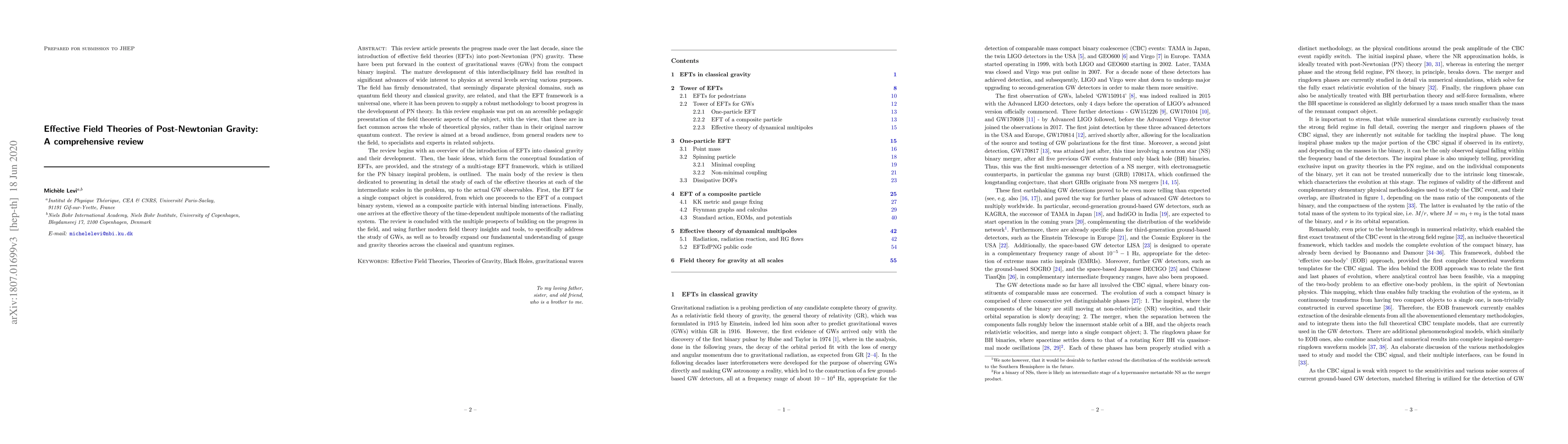 [Abridged] This review article presents the progress made over the last decade, since the introduction of effective field theories (EFTs) into post-Newtonian (PN) gravity. These have been put forward in the context of gravitational waves (GWs) from the compact binary inspiral. The mature development of this interdisciplinary field has resulted in significant advances of wide interest to physics at several levels serving various purposes. The field has firmly demonstrated, that seemingly disparate physical domains, such as quantum field theory and classical gravity, are related, and that the EFT framework is a universal one, where it has been proven to supply a robust methodology to boost progress in the development of PN theory. The review is aimed at a broad audience, from general readers new to the field, to specialists and experts in related subjects. The review begins with an overview of the introduction of EFTs into classical gravity and their development. Then, the basic ideas, which form the conceptual foundation of EFTs, are provided, and the strategy of a multi-stage EFT framework, which is utilized for the PN binary inspiral problem, is outlined. The main body of the review is then dedicated to presenting in detail the study of each of the effective theories at each of the intermediate scales in the problem, up to the actual GW observables. The review is concluded with the multiple prospects of building on the progress in the field, and using further modern field theory insights and tools, to specifically address the study of GWs, as well as to broadly expand our fundamental understanding of gauge and gravity theories across the classical and quantum regimes.