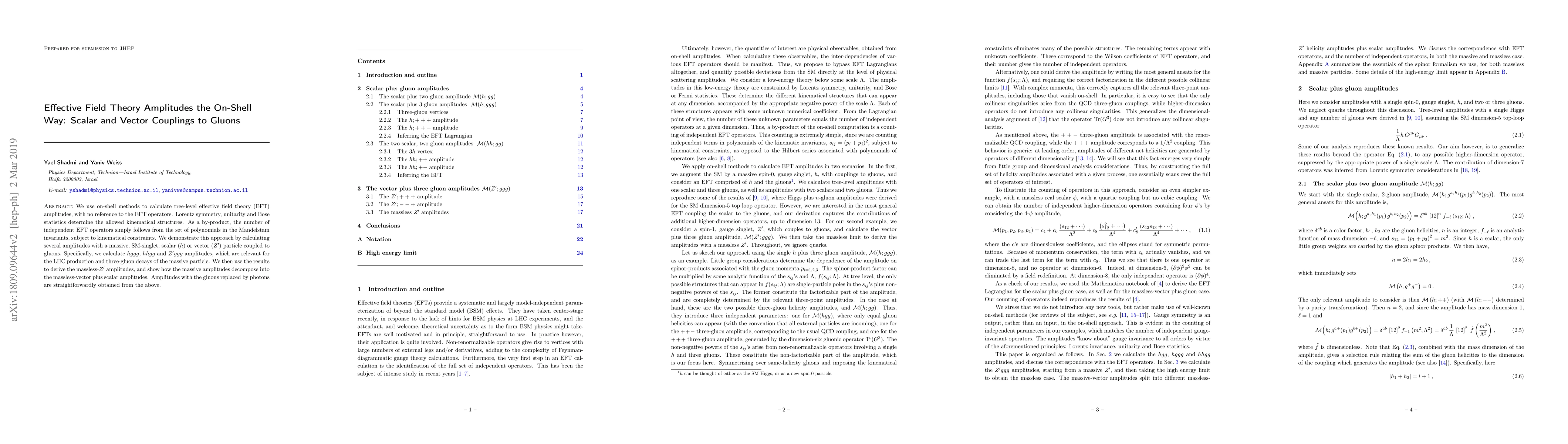 We use on-shell methods to calculate tree-level effective field theory (EFT) amplitudes, with no reference to the EFT operators. Lorentz symmetry, unitarity and Bose statistics determine the allowed kinematical structures. As a by-product, the number of independent EFT operators simply follows from the set of polynomials in the Mandelstam invariants, subject to kinematical constraints. We demonstrate this approach by calculating several amplitudes with a massive, SM-singlet, scalar ($h$) or vector ($Z^\prime$) particle coupled to gluons. Specifically, we calculate $hggg$, $hhgg$ and $Z^\prime ggg$ amplitudes, which are relevant for the LHC production and three-gluon decays of the massive particle. We then use the results to derive the massless-$Z^\prime$ amplitudes, and show how the massive amplitudes decompose into the massless-vector plus scalar amplitudes. Amplitudes with the gluons replaced by photons are straightforwardly obtained from the above.