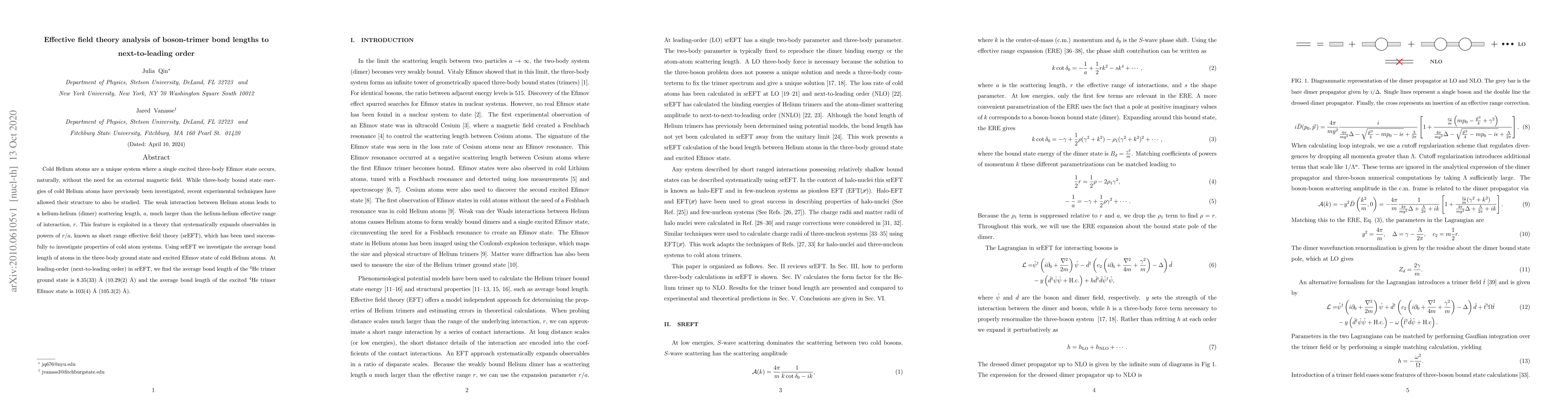 Cold Helium atoms are a unique system where a single excited three-body Efimov state occurs, naturally, without the need for an external magnetic field. While three-body bound state energies of cold Helium atoms have previously been investigated, recent experimental techniques have allowed their structure to also be studied. The weak interaction between Helium atoms leads to a helium-helium (dimer) scattering length, $a$, much larger than the helium-helium effective range of interaction, $r$. This feature is exploited in a theory that systematically expands observables in powers of $r/a$, known as short range effective field theory (srEFT), which has been used successfully to investigate properties of cold atom systems. Using srEFT we investigate the average bond length of atoms in the three-body ground state and excited Efimov state of cold Helium atoms. At leading-order (next-to-leading order) in srEFT, we find the average bond length of the $^4$He trimer ground state is 8.35(33) \r{A} (10.29(2) \r{A}) and the average bond length of the excited $^4$He trimer Efimov state is 103(4) \r{A} (105.3(2) \r{A}).