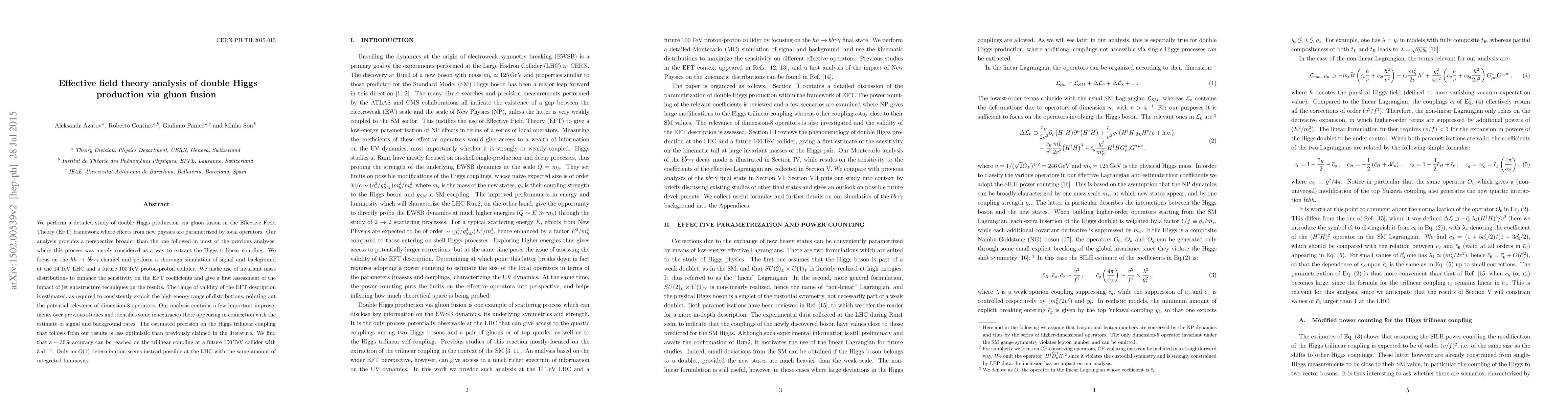 This paper analyzes double Higgs production via gluon fusion using Effective Field Theory, finding that a 100 TeV collider could achieve ~30% accuracy in measuring the trilinear coupling, while the LHC would only reach O(1) determination.