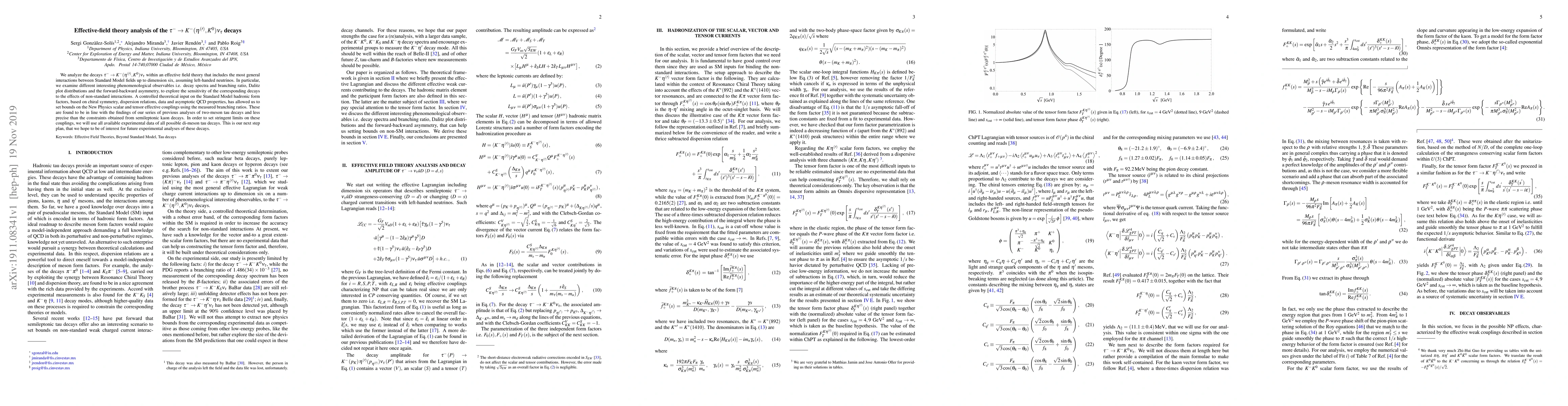 We analyze the decays $\tau^-\to K^-(\eta^{(\prime)},K^0) \nu_\tau$ within an effective field theory that includes the most general interactions between Standard Model fields up to dimension six, assuming left-handed neutrinos. In particular, we examine different interesting phenomenological observables i.e. decay spectra and branching ratio, Dalitz plot distributions and the forward-backward asymmetry, to explore the sensitivity of the corresponding decays to the effects of non-standard interactions. A controlled theoretical input on the Standard Model hadronic form factors, based on chiral symmetry, dispersion relations, data and asymptotic QCD properties, has allowed us to set bounds on the New Physics scalar and tensor effective couplings using the measured branching ratios. These are found to be in line with the findings of our series of previous analyses of two-meson tau decays and less precise than the constraints obtained from semileptonic kaon decays. In order to set stringent limits on these couplings, we will use all available experimental data of all possible di-meson tau decays. This is our next step plan, that we hope to be of interest for future experimental analyses of these decays.