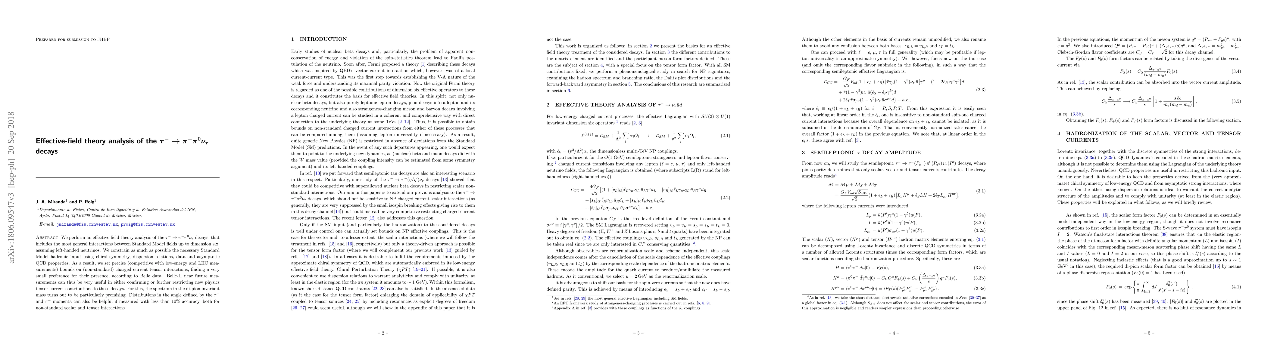 We perform an effective field theory analysis of the $\tau^- \to \pi^- \pi^0 \nu_\tau$ decays, that includes the most general interactions between Standard Model fields up to dimension six, assuming left-handed neutrinos. We constrain as much as possible the necessary Standard Model hadronic input using chiral symmetry, dispersion relations, data and asymptotic QCD properties. As a result, we set precise (competitive with low-energy and LHC measurements) bounds on (non-standard) charged current tensor interactions, finding a very small preference for their presence, according to Belle data. Belle-II near future measurements can thus be very useful in either confirming or further restricting new physics tensor current contributions to these decays. For this, the spectrum in the di-pion invariant mass turns out to be particularly promising. Distributions in the angle defined by the $\tau^-$ and $\pi^-$ momenta can also be helpful if measured with less than $10\%$ accuracy, both for non-standard scalar and tensor interactions.