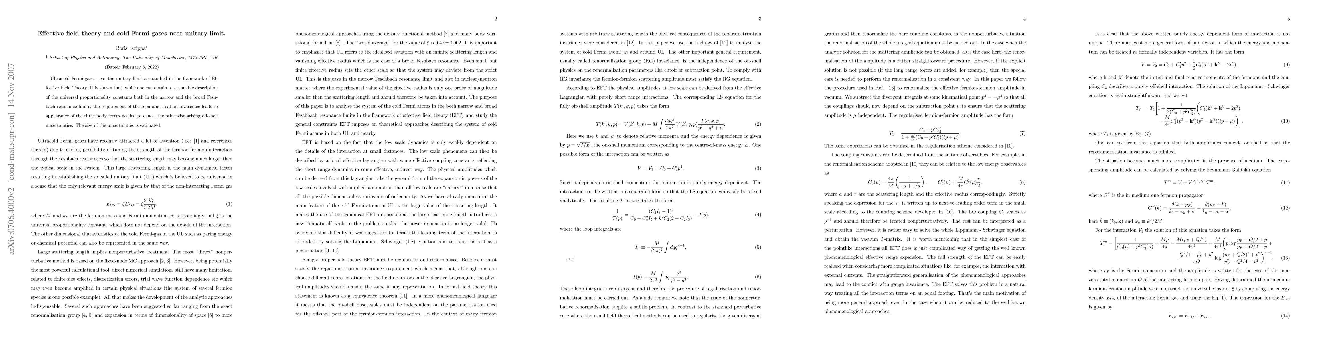 We study a dynamics of ultracold Fermi-gases near the unitary limit in the framework of Effective Field Theory. It is shown that, while one can obtain a reasonable description of the universal proportionality constant both in the narrow and the broad Feshbach resonance limits, the reguirement of the reparametrisation invariance leads to appearance of the three body forces needed to cancel the otherwise arising off-shell uncertainties. The size of the unsertainties is estimated.