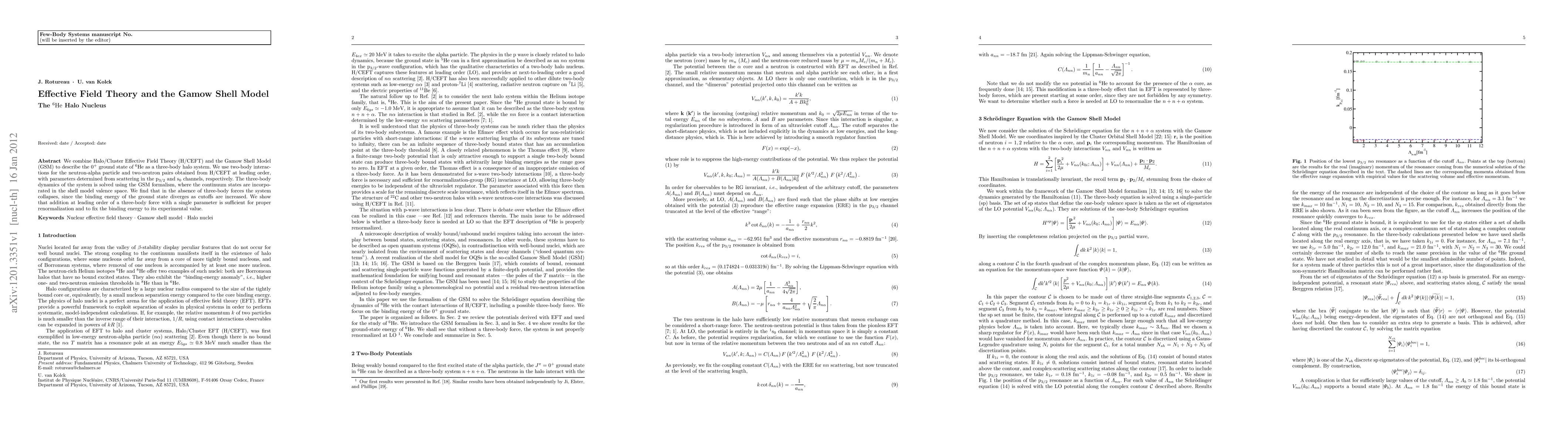 This paper combines Halo/Cluster Effective Field Theory and the Gamow Shell Model to describe the $0^+$ ground state of the $^6He$ nucleus, revealing that the system's stability requires a three-body force to properly renormalize the binding energy and match experimental values.
