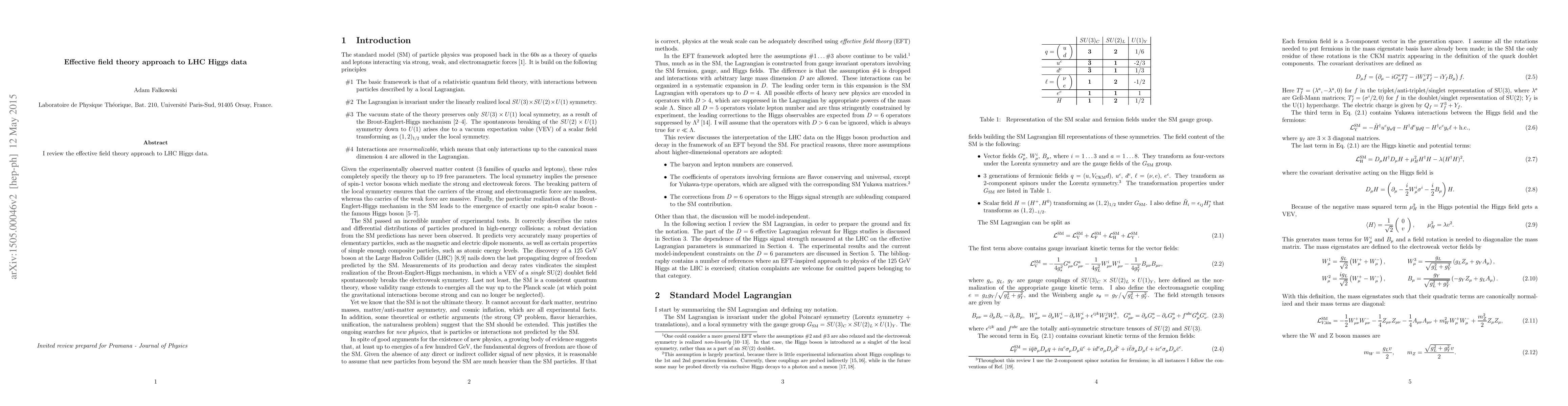 I review the effective field theory approach to LHC Higgs data.