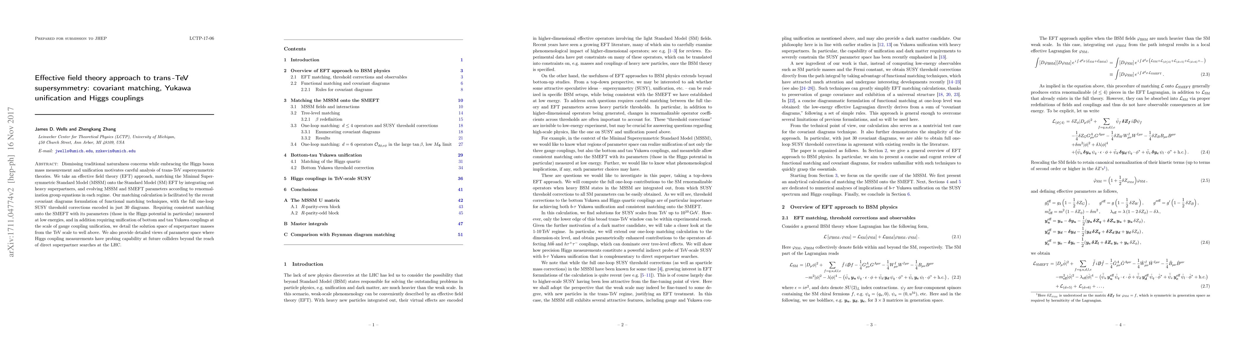 This paper employs an effective field theory (EFT) approach to analyze trans-TeV supersymmetric theories, focusing on covariant matching and Yukawa unification. It explores the parameter space for superpartner masses above the TeV scale, emphasizing regions where Higgs coupling measurements can probe beyond LHC reach.